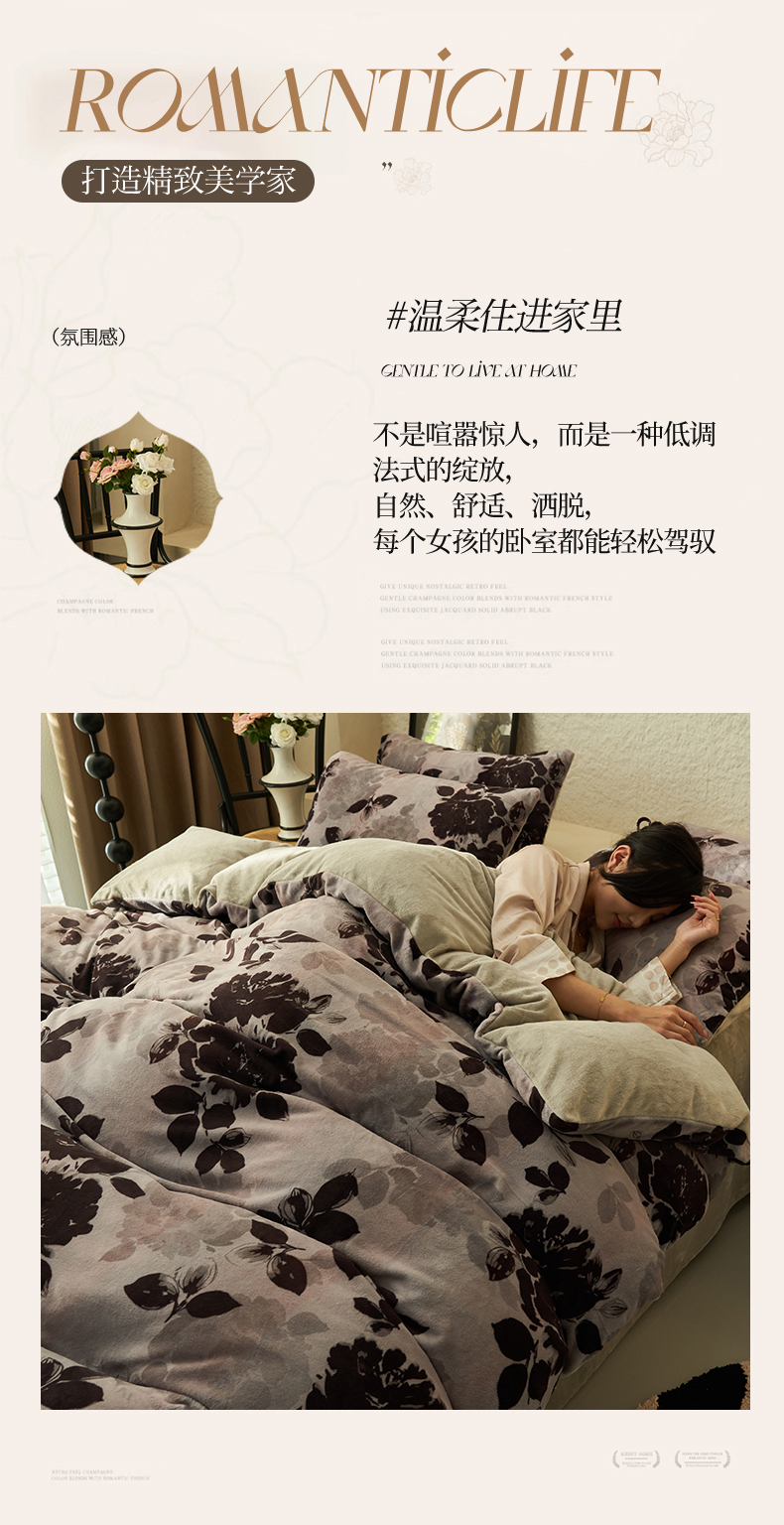 (总)金鹰 2025新款A类数码印花牛奶绒四件套绒套件,相思,丽莎,朝思暮想,迟迟晚云,枫叶,红尘客栈,花之恋,洛恩,漫意,漫游玫瑰,秋日恋曲,邂逅