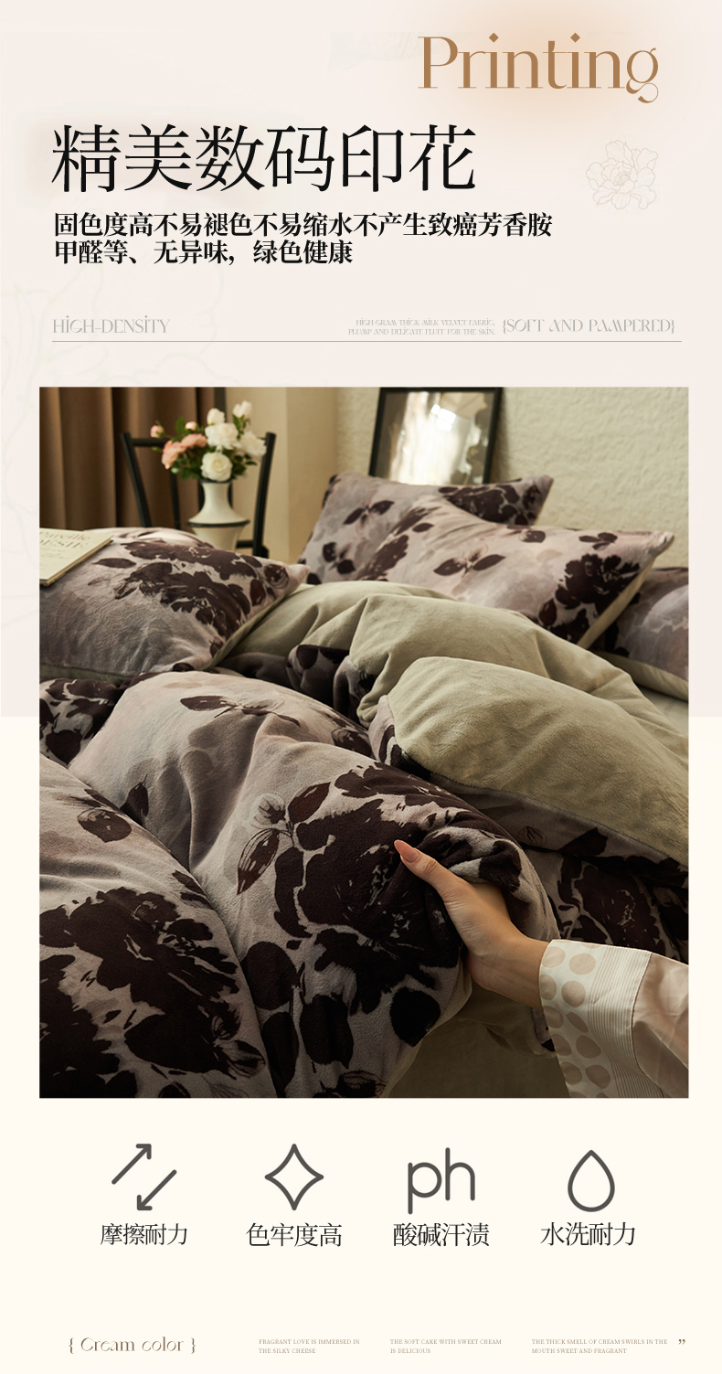 商品名称:金鹰 2025新款A类数码印花牛奶绒四件套绒套件 漫游玫瑰