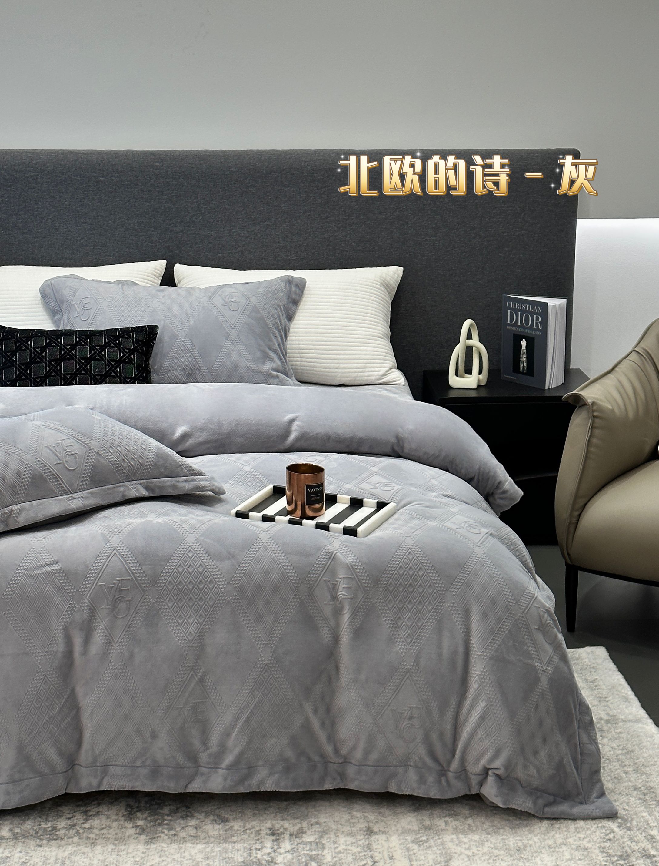 JUICY 橘滋家纺 2025新款高级简约立体提花浮雕牛奶绒系列四件套 玫瑰梦影-灰