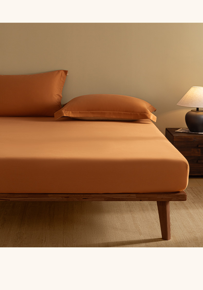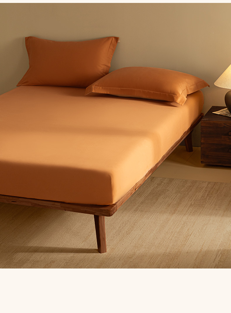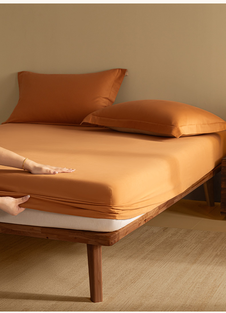 秀色家纺 2025高端长绒棉贡缎加厚磨毛纯棉单件床笠三件套床罩全棉床垫保护套50s 冬禧-晚霞橙