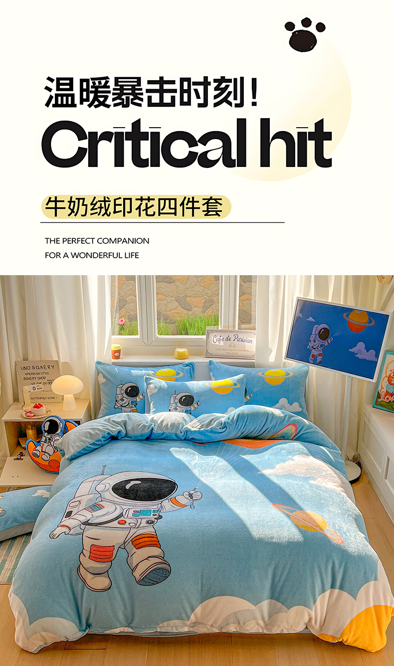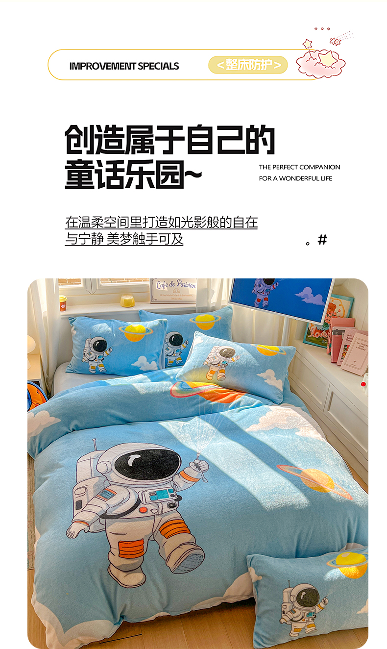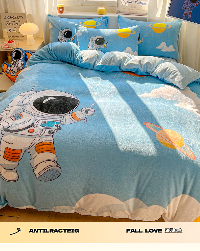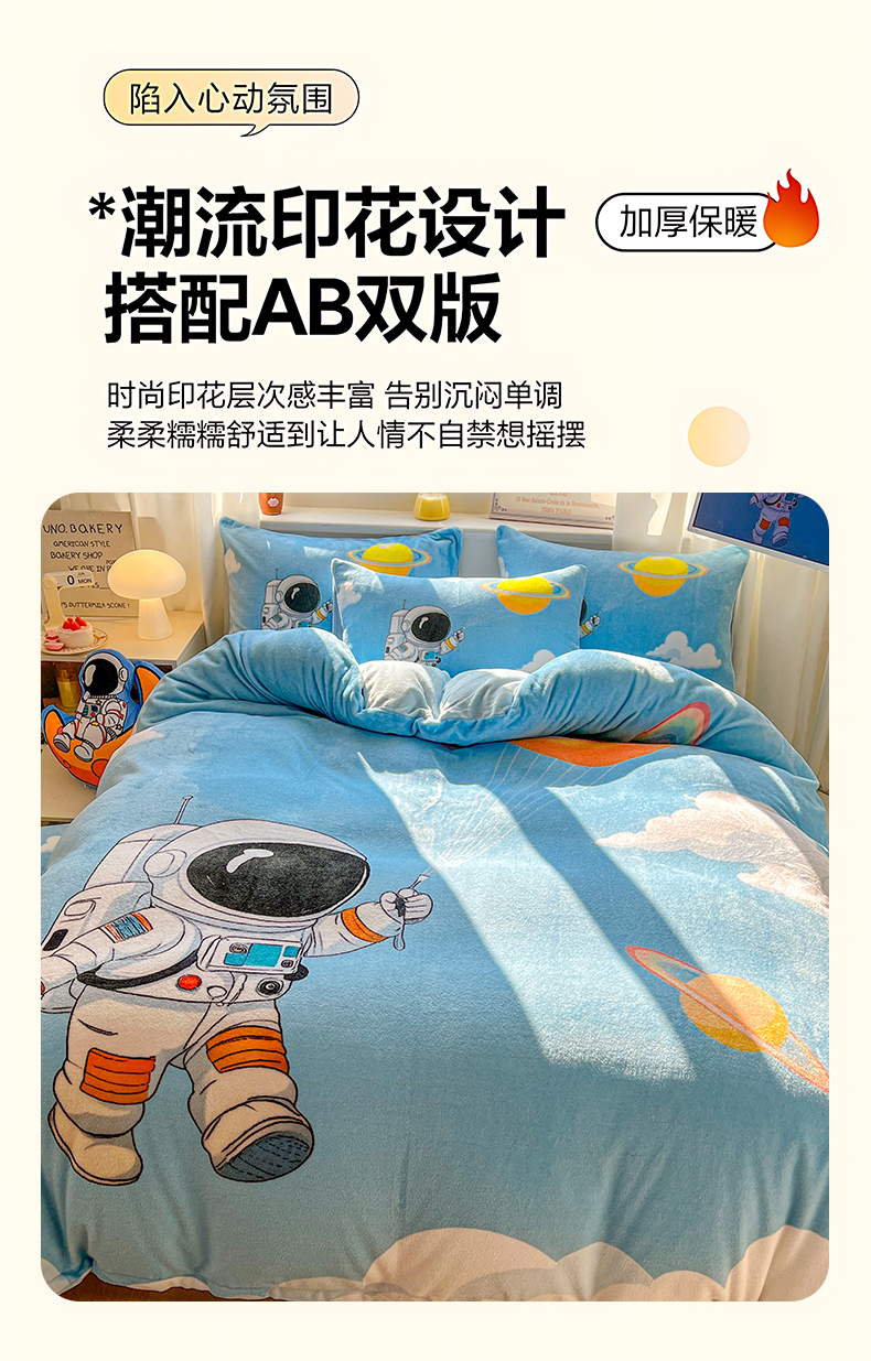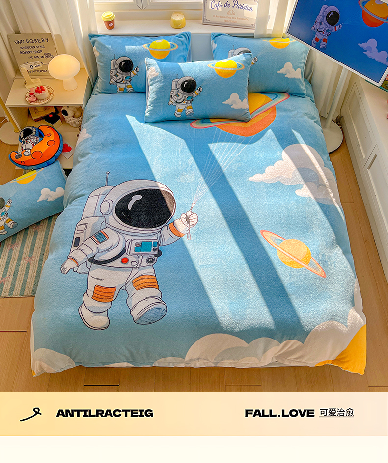 当前位置: 91家纺网 > 商品网购 > 床品套件 > 四件套 > 牛奶绒四件套 > 浩诚 2025新款高克重原创设计宇航员太空人牛奶绒大版卡通四件套 太空漫步