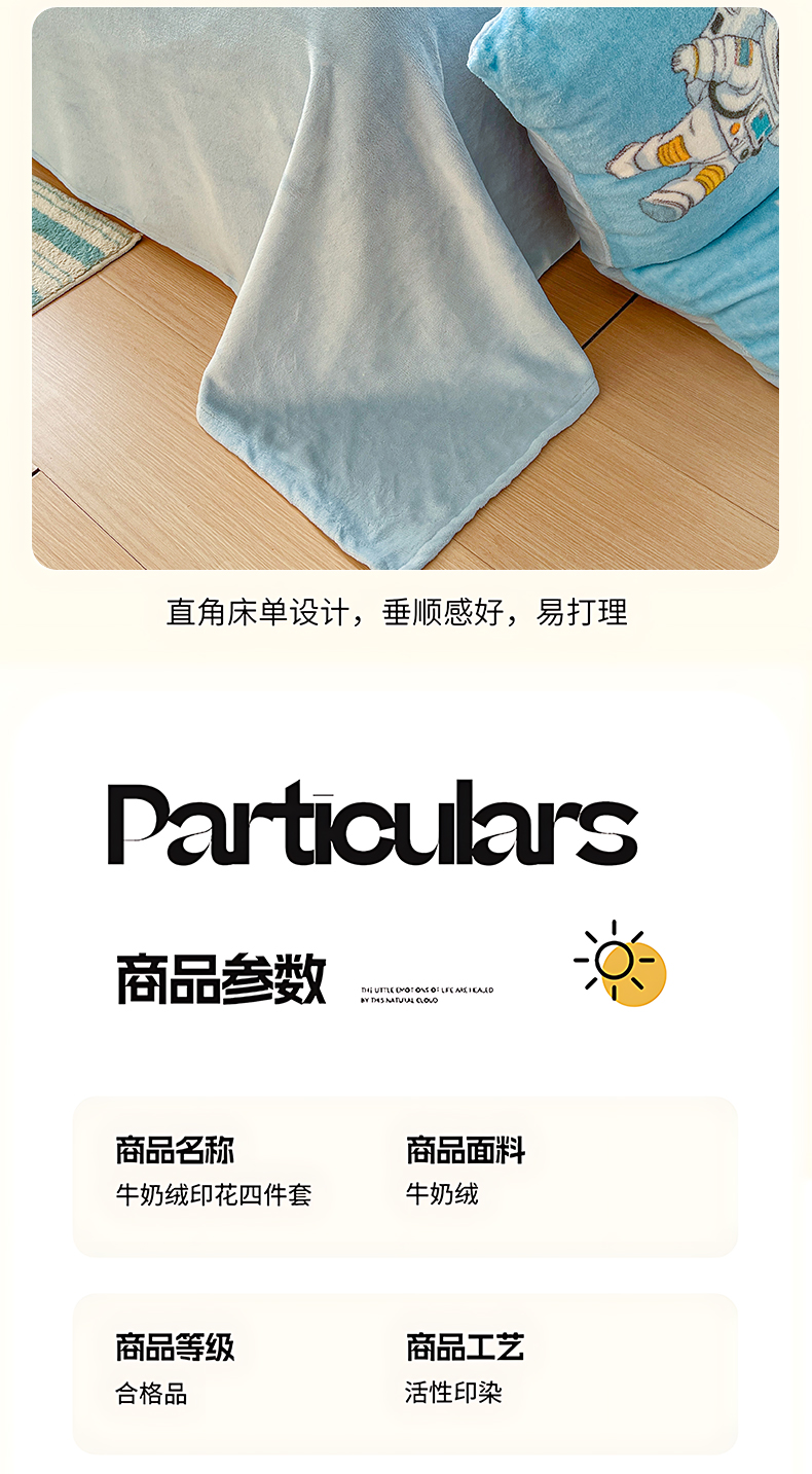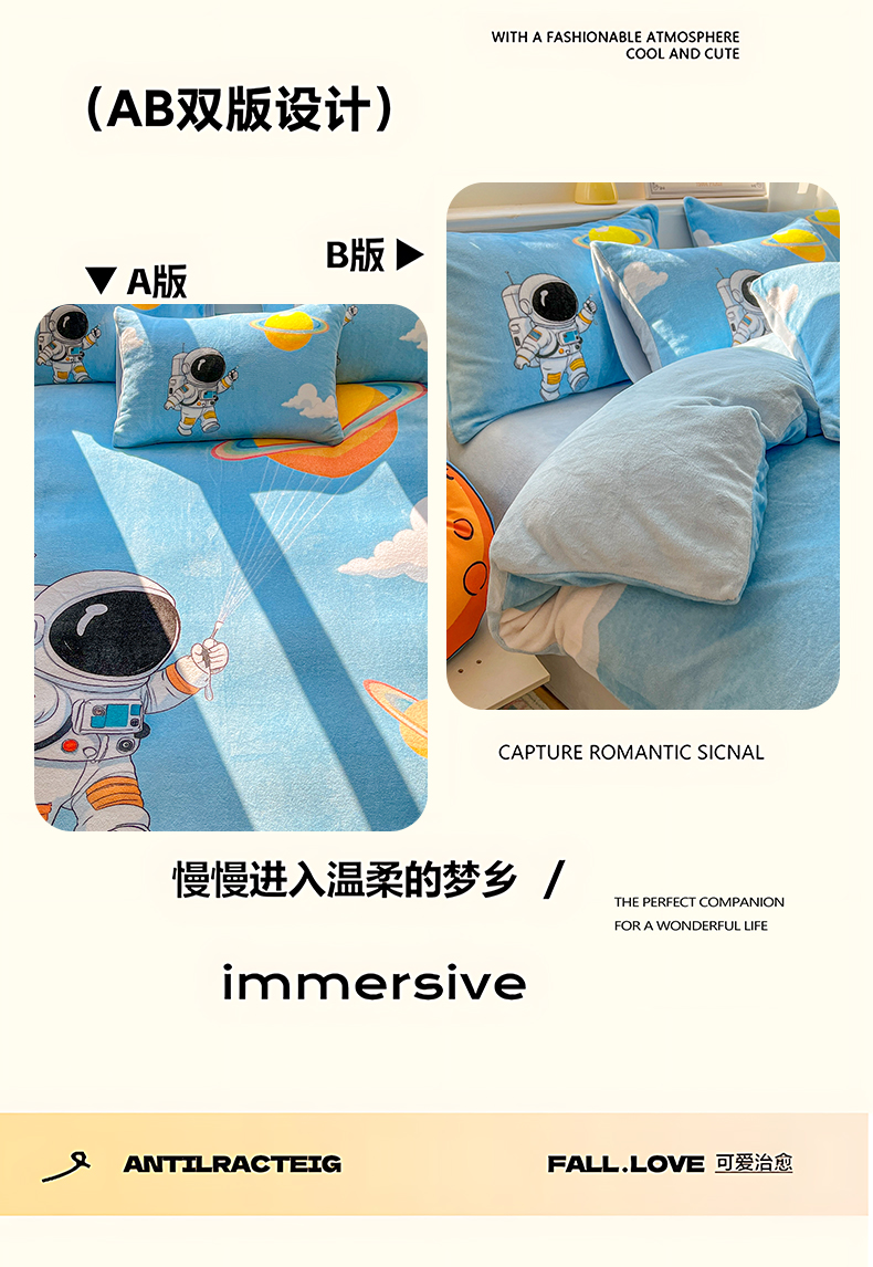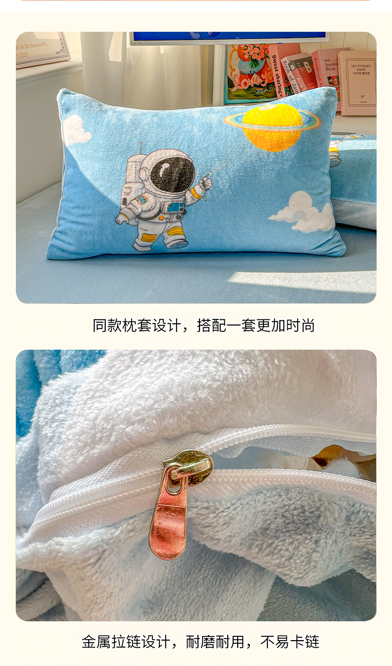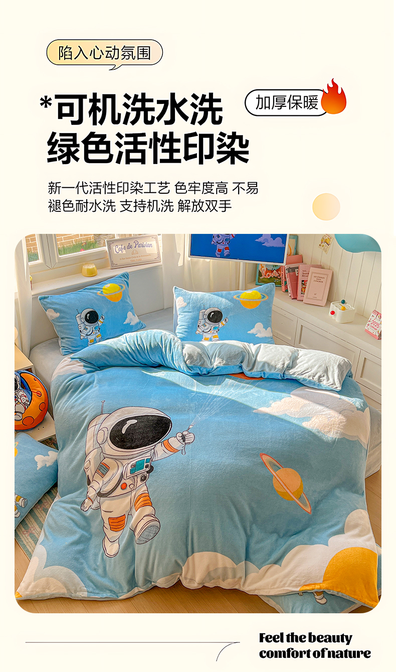 当前位置: 91家纺网 > 商品网购 > 床品套件 > 四件套 > 牛奶绒四件套 > 浩诚 2025新款高克重原创设计宇航员太空人牛奶绒大版卡通四件套 太空漫步