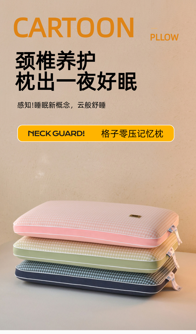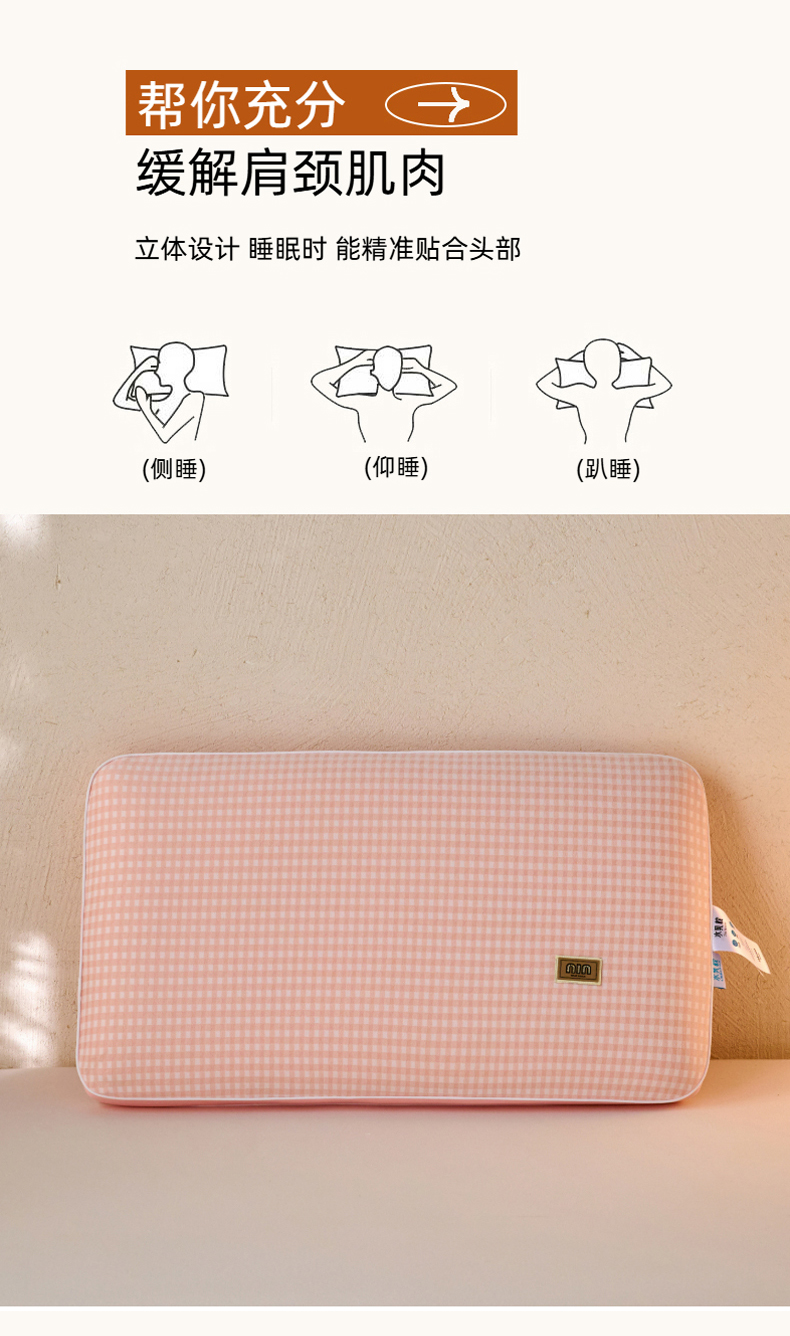 帝诺妮枕芯坊 2025新款格子零压记忆枕 枕头枕芯 粉色