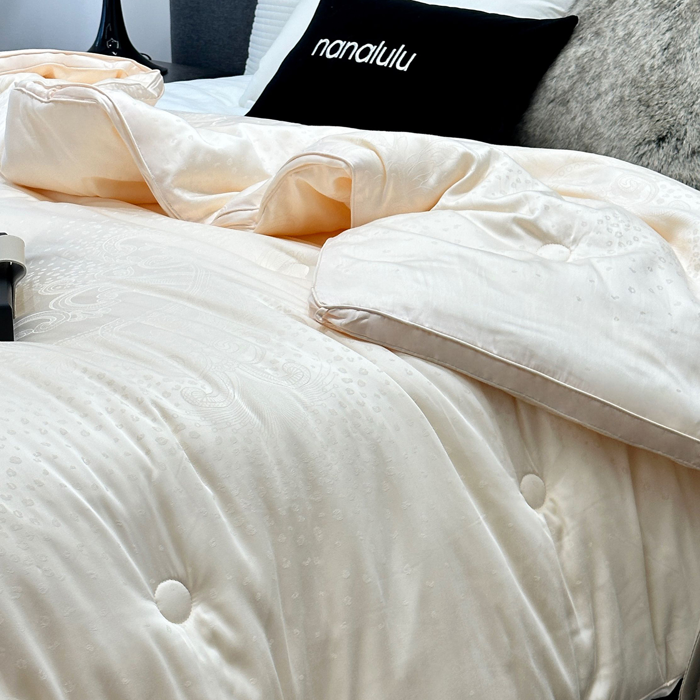 商品名称:JUICY 橘滋家纺 2025新款高奢皇室大提花黄金蚕丝羊毛被子被芯 卢修斯-落日金