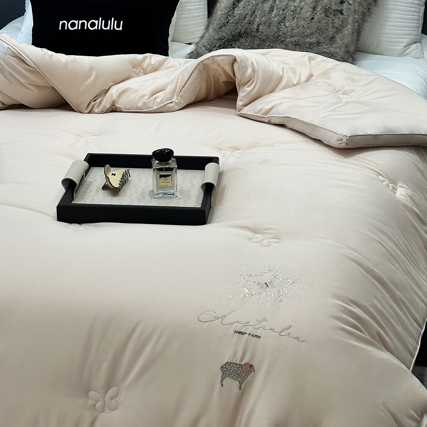 • 91家纺网 家纺一手货源 找家纺 (总)JUICY 橘滋家纺 2025新款典雅轻奢高定羽绒羊毛双胎被子被芯- 千金粉,千金粉