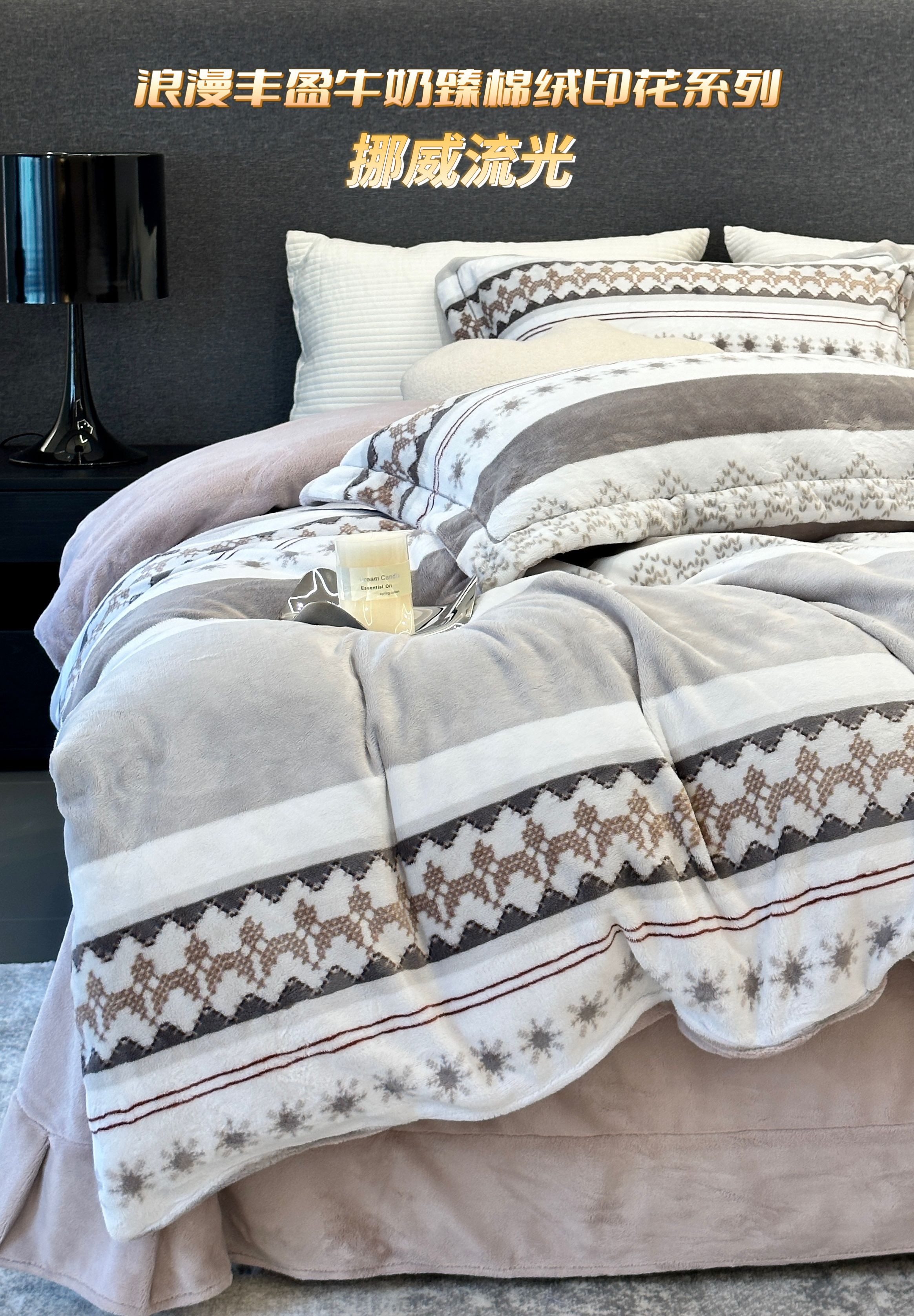 JUICY 橘滋家纺 2025新款浪漫丰盈牛奶臻棉绒印花系列四件套 麦拉