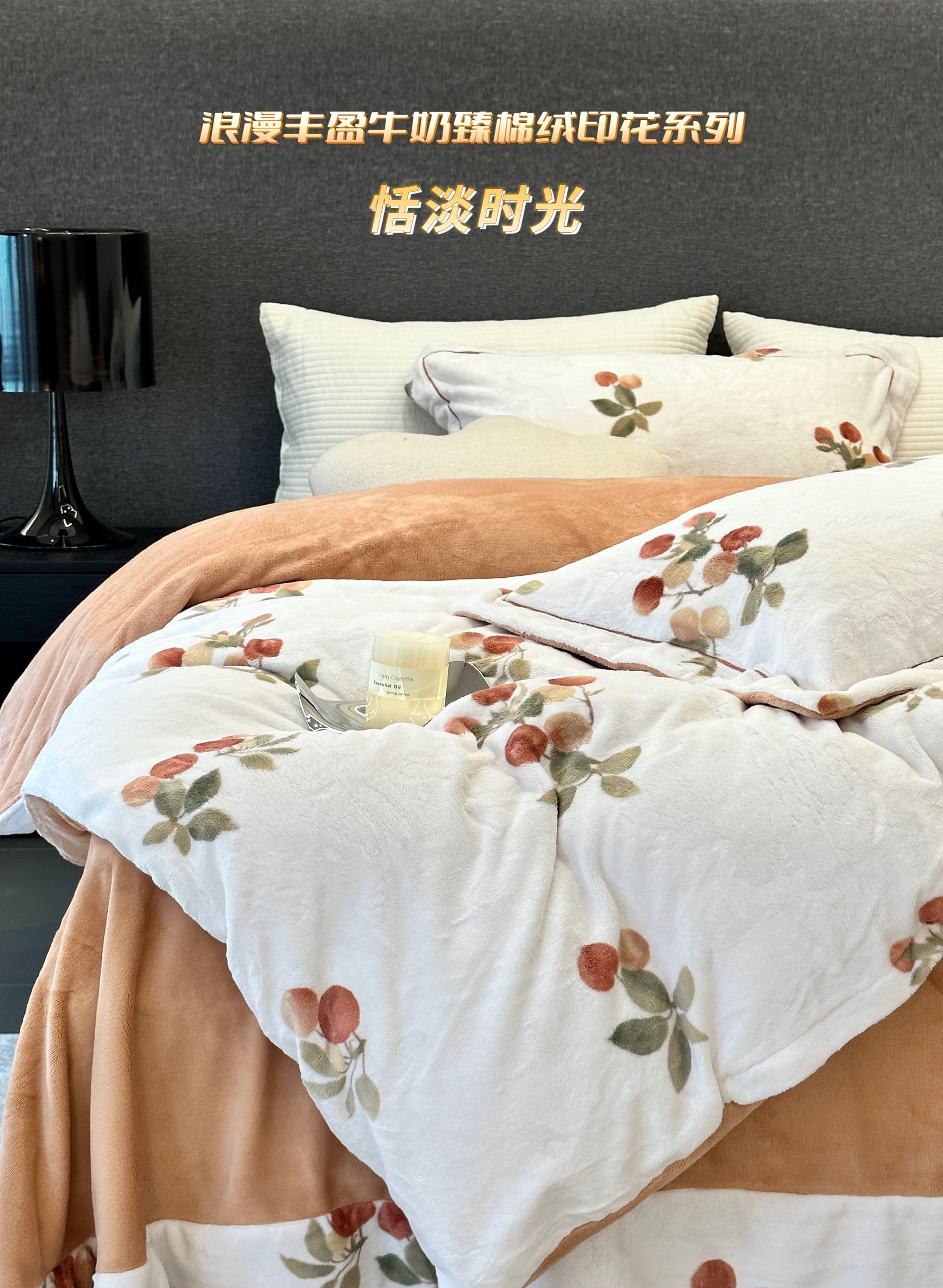 商品名称:JUICY 橘滋家纺 2025新款浪漫丰盈牛奶臻棉绒印花系列四件套 麦拉