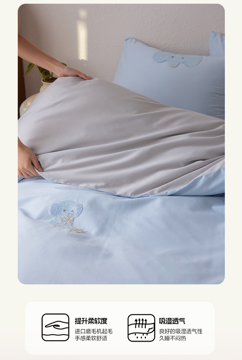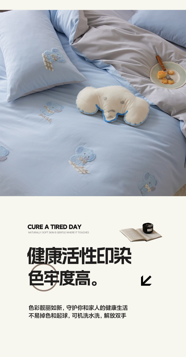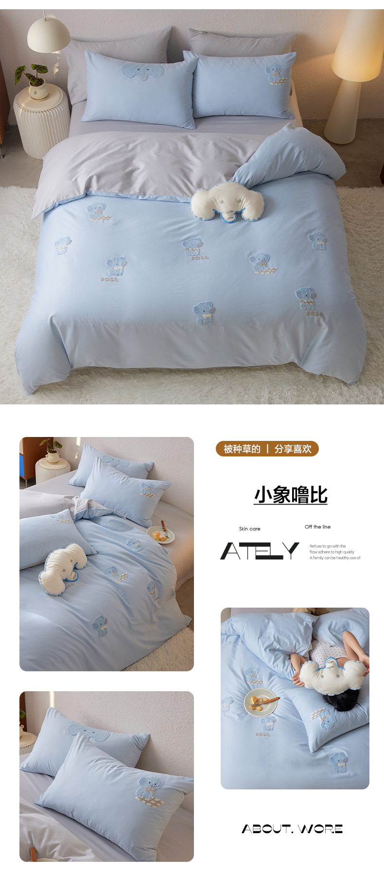 商品名称:(总)简纯主义 2025新款全棉磨毛毛巾绣绣花四件套-小象噜比