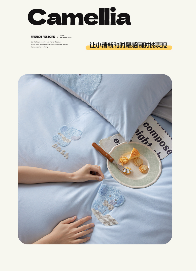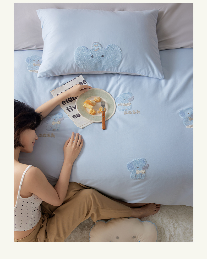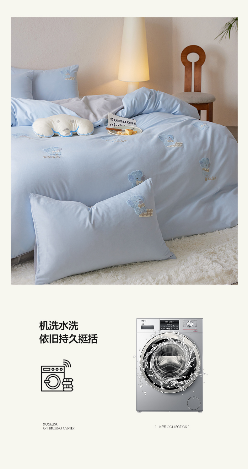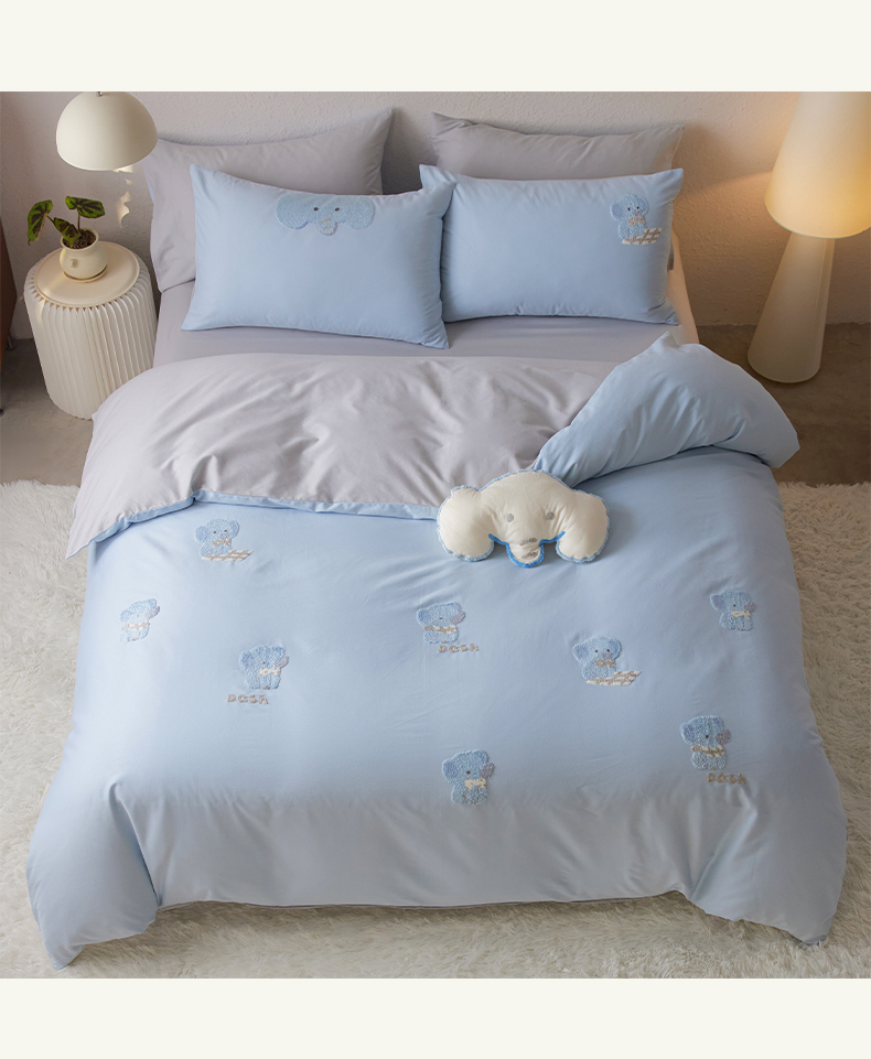商品名称:(总)简纯主义 2025新款全棉磨毛毛巾绣绣花四件套-小象噜比