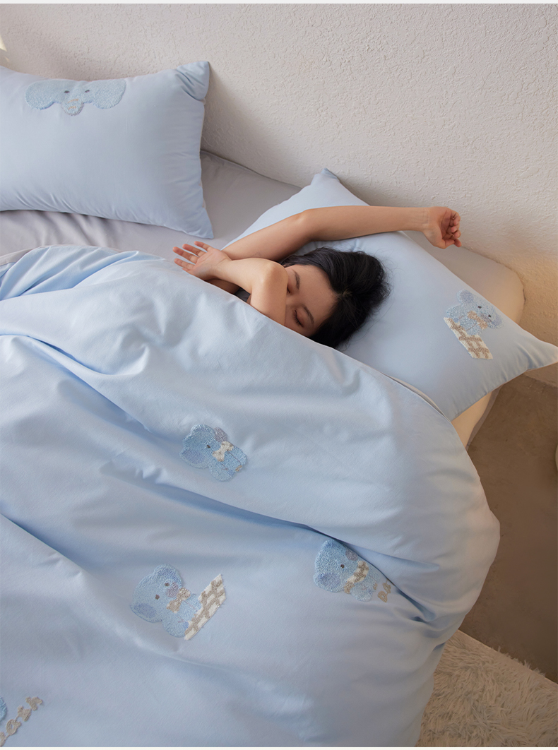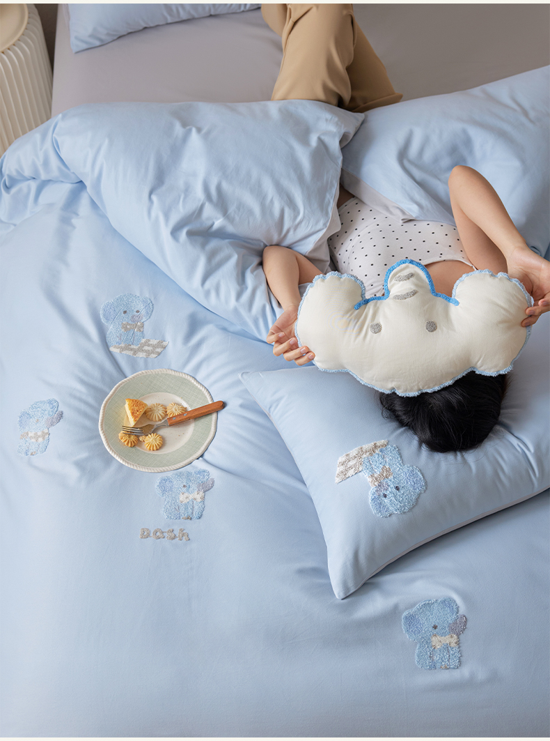 (总)简纯主义 2025新款A类趣味系列全棉长绒棉插画绣花四件套-露露米娅,露露米娅-白,露露米娅-粉,露露米娅-蓝