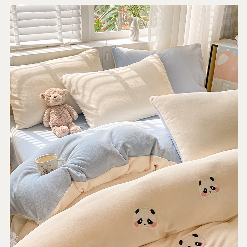 商品名称:仔仔熊 2025新款牛奶绒刺绣被套单被套被套单件 粉颊熊猫梦-蓝