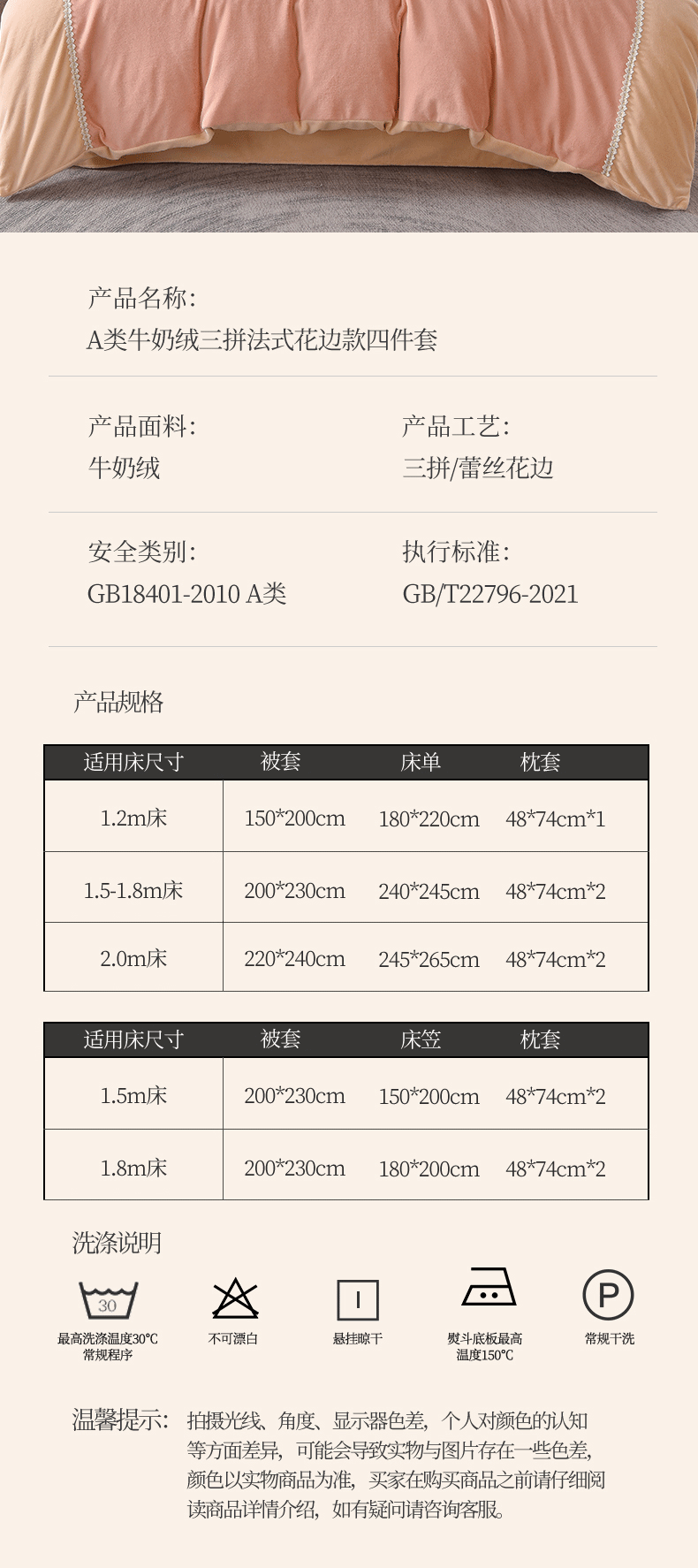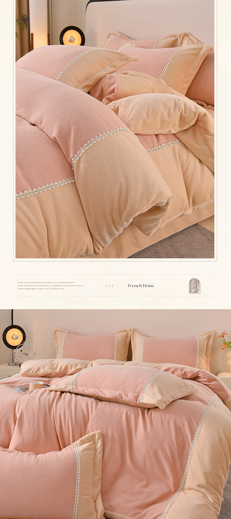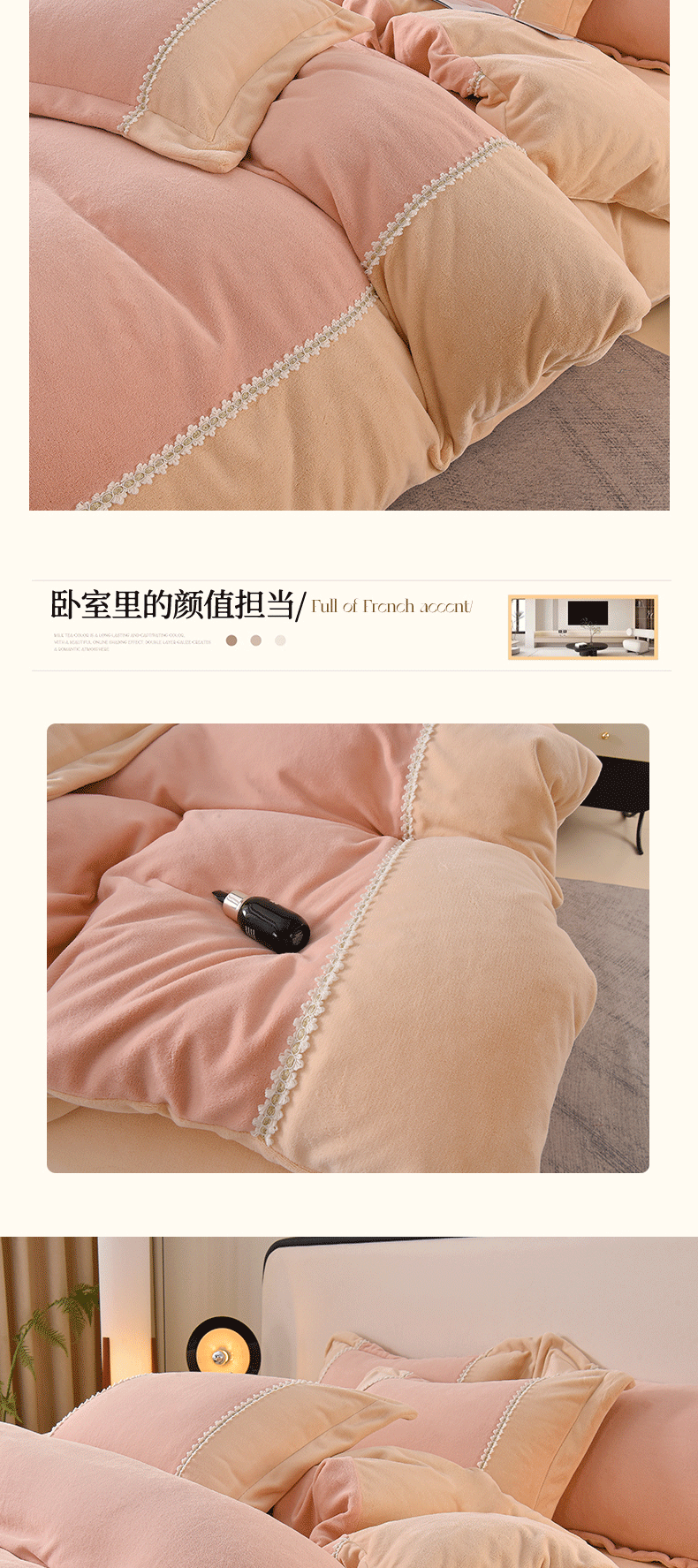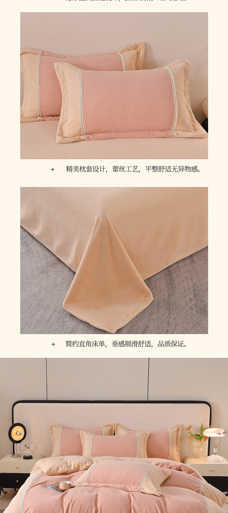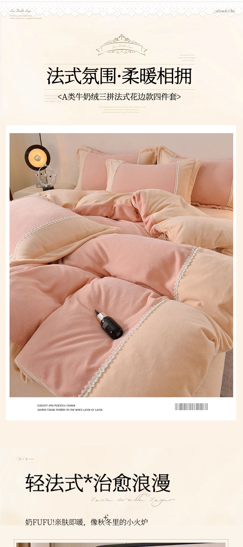 当前位置: 91家纺网 > 商品网购 > 床品套件 > 四件套 > 牛奶绒四件套 > 眷恋家纺 2025新款A类牛奶绒三拼法式花边款四件套-蒂凡妮 蒂凡妮-粉香槟