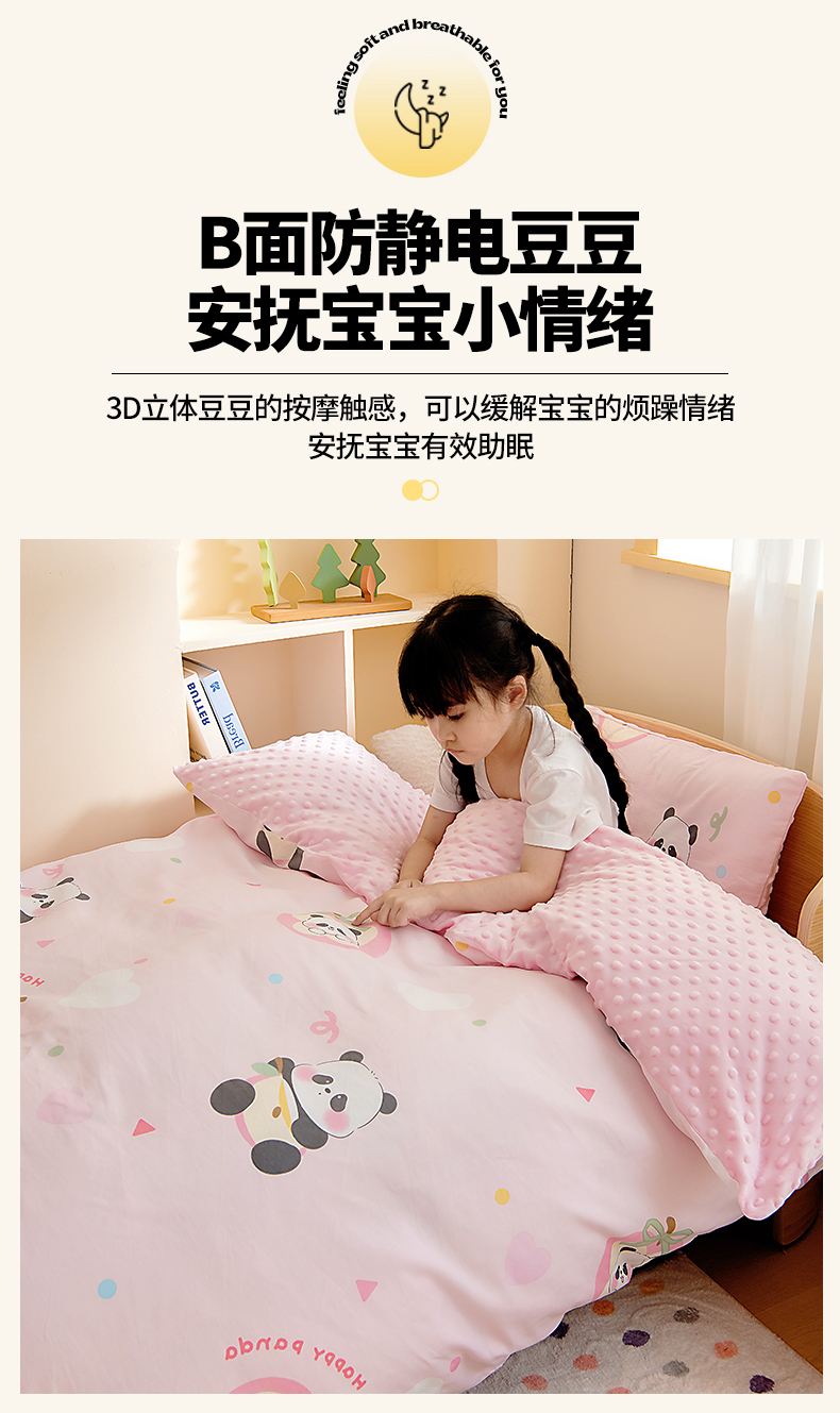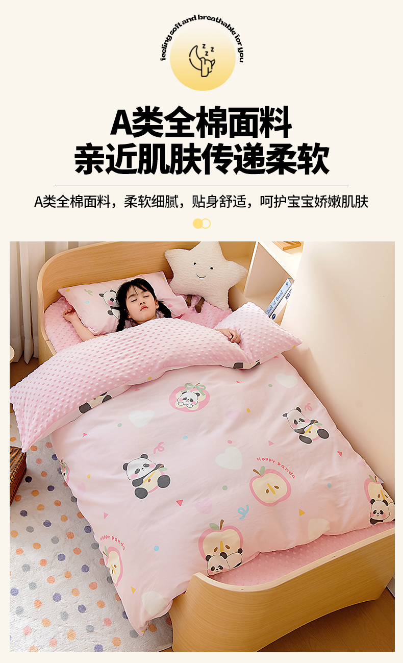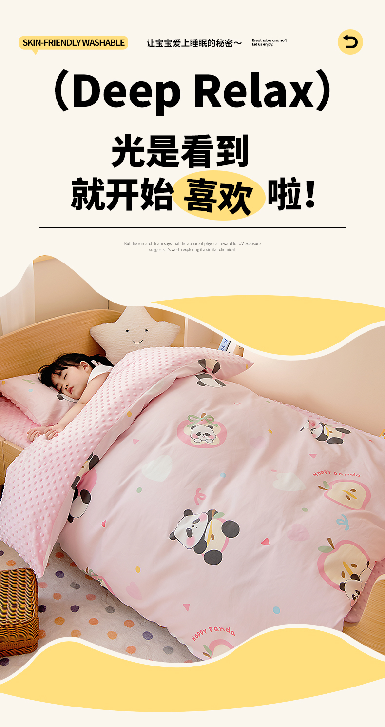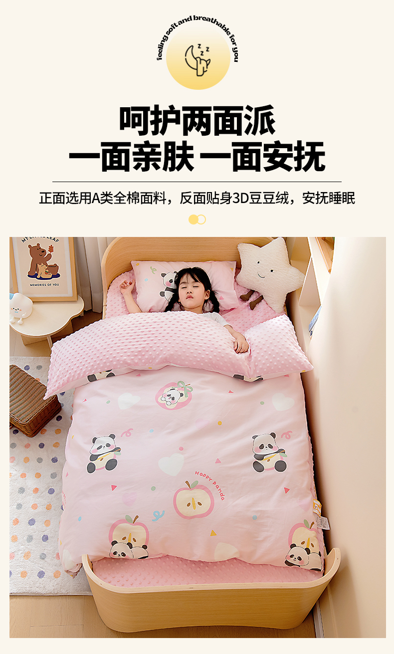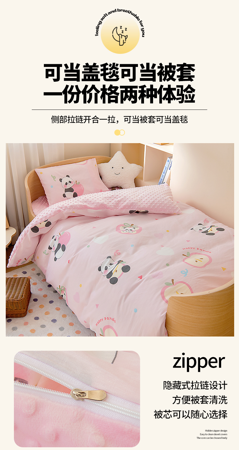 • 91家纺网 家纺一手货源 找家纺 鱼宝 2025新款可拆洗全棉豆豆被套被芯 熊猫苹果