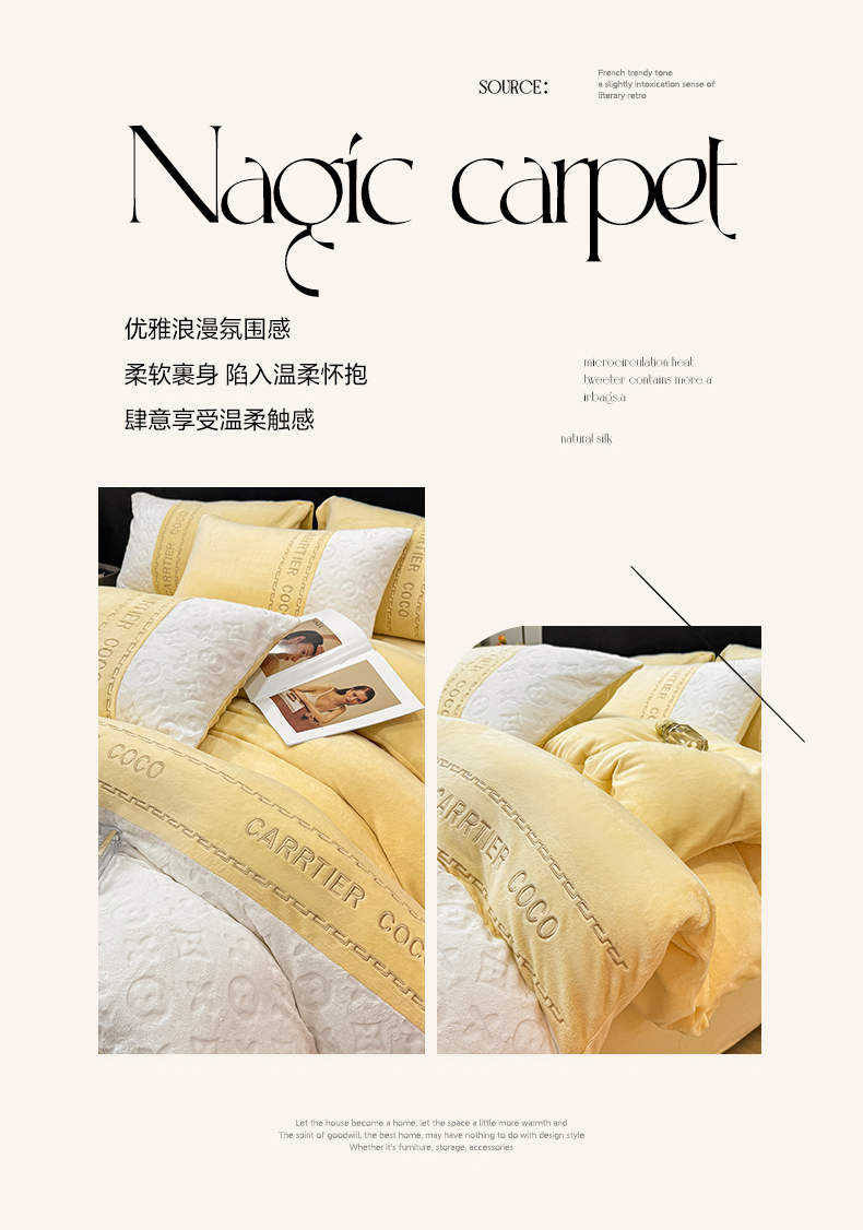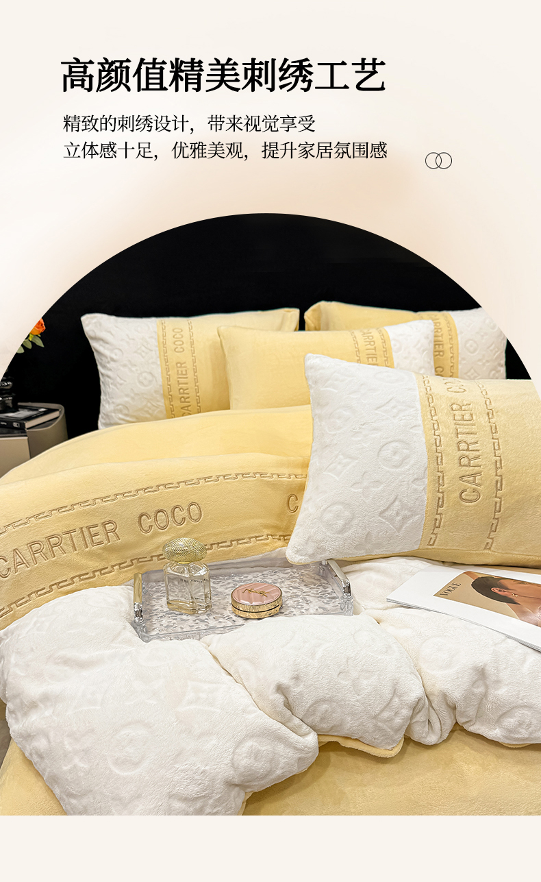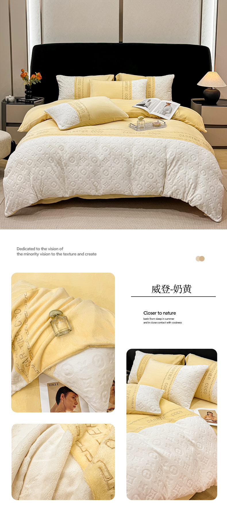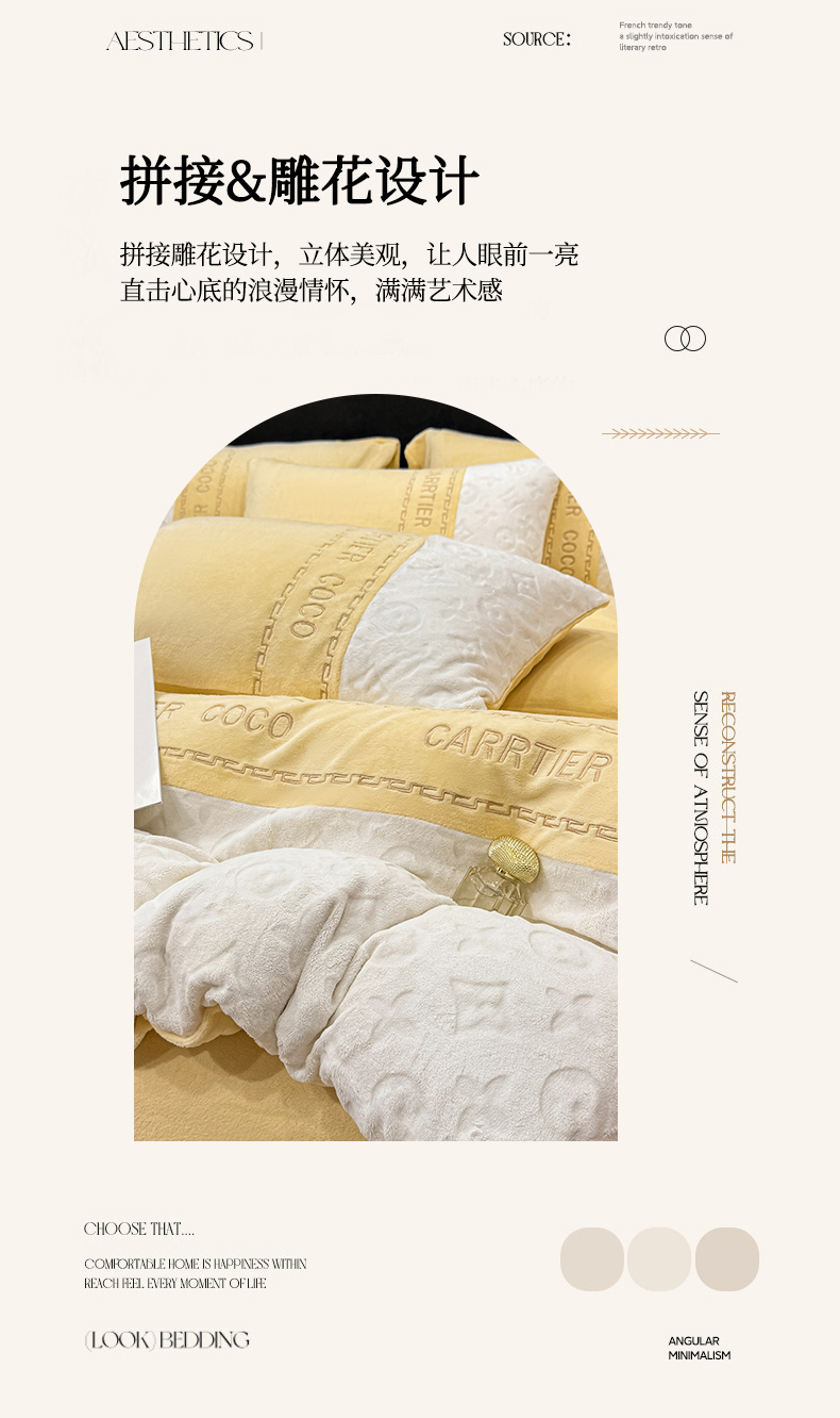 当前位置: 91家纺网 > 商品网购 > 床品套件 > 四件套 > 牛奶绒四件套 > 灰鲸 2025新款牛奶绒拼接刺绣雕花四件套-威登 威登-奶黄