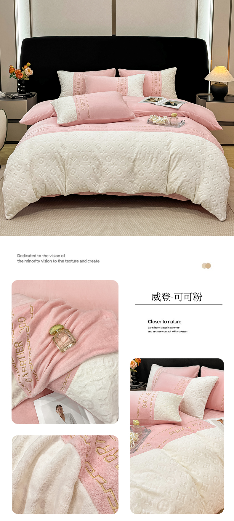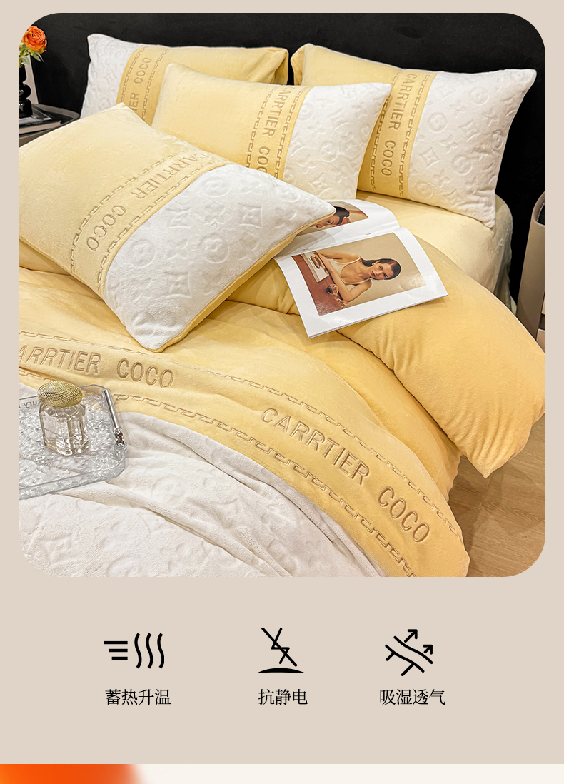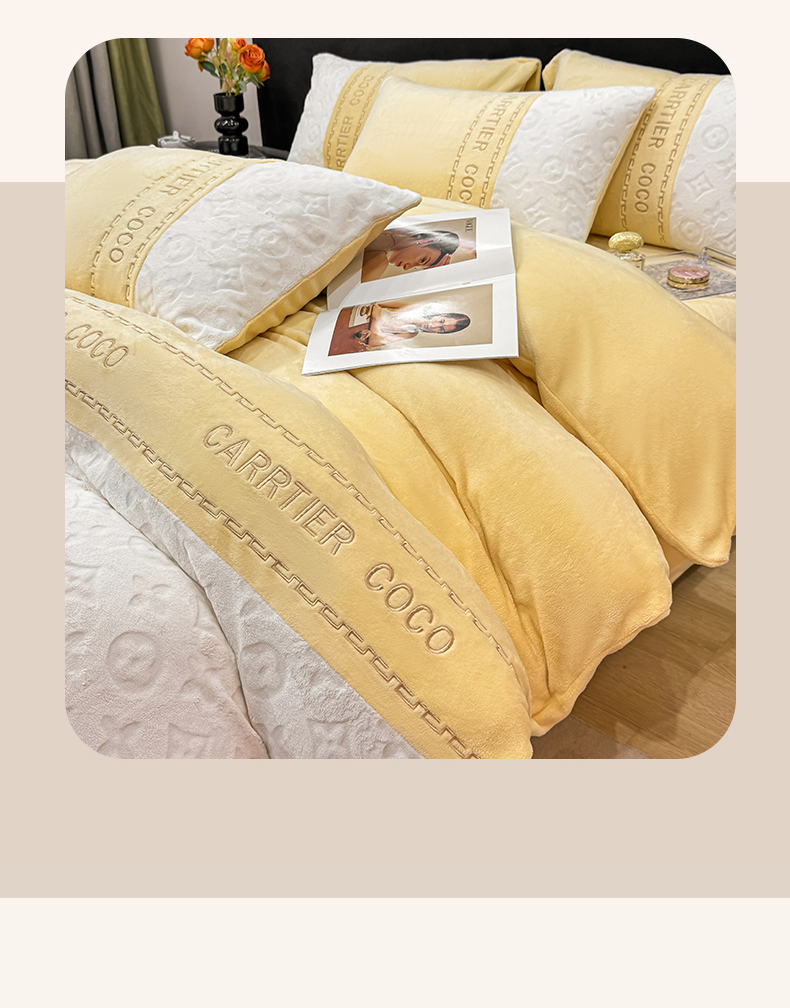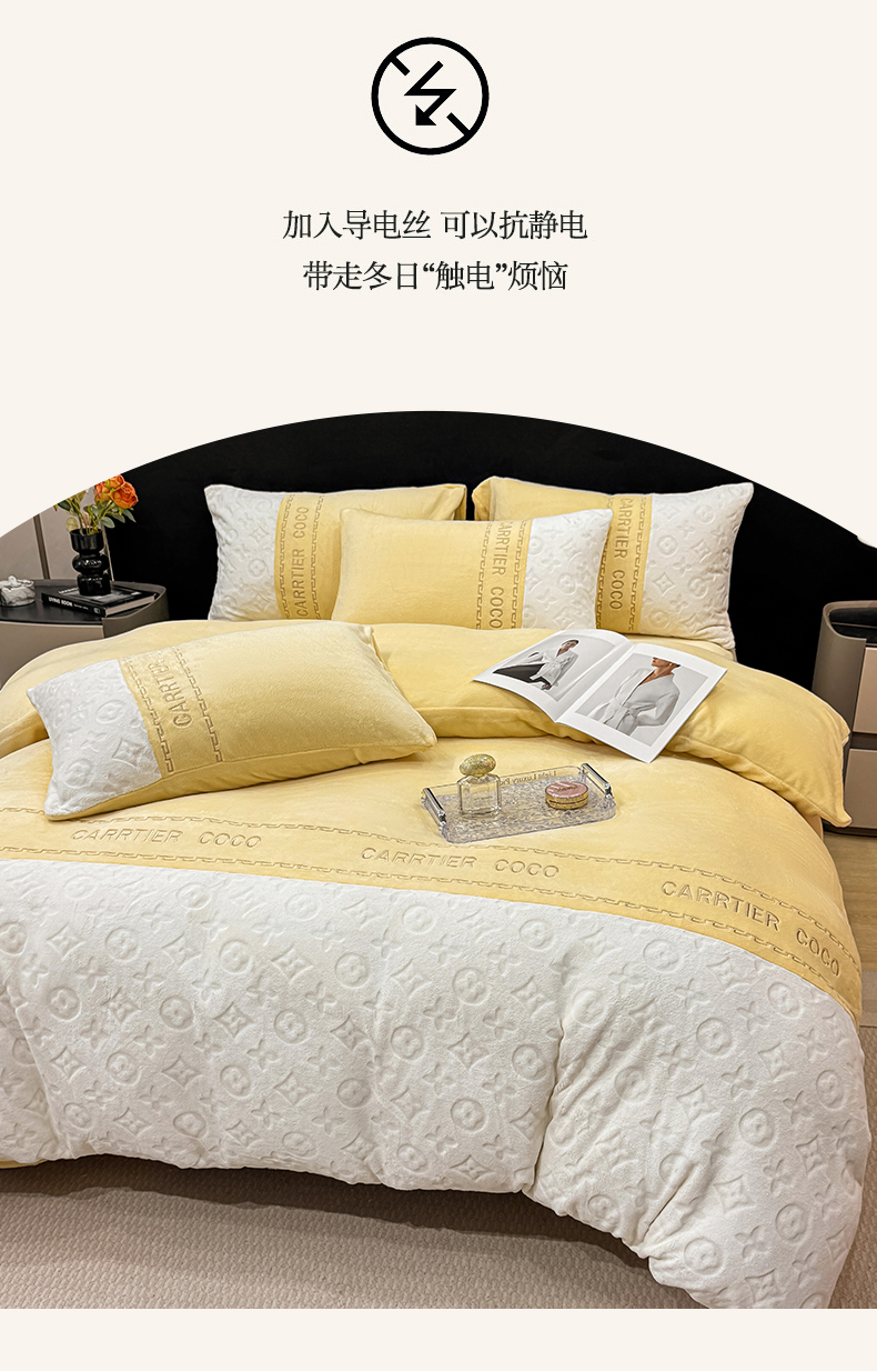 当前位置: 91家纺网 > 商品网购 > 床品套件 > 四件套 > 牛奶绒四件套 > 灰鲸 2025新款牛奶绒拼接刺绣雕花四件套-威登 威登-奶黄