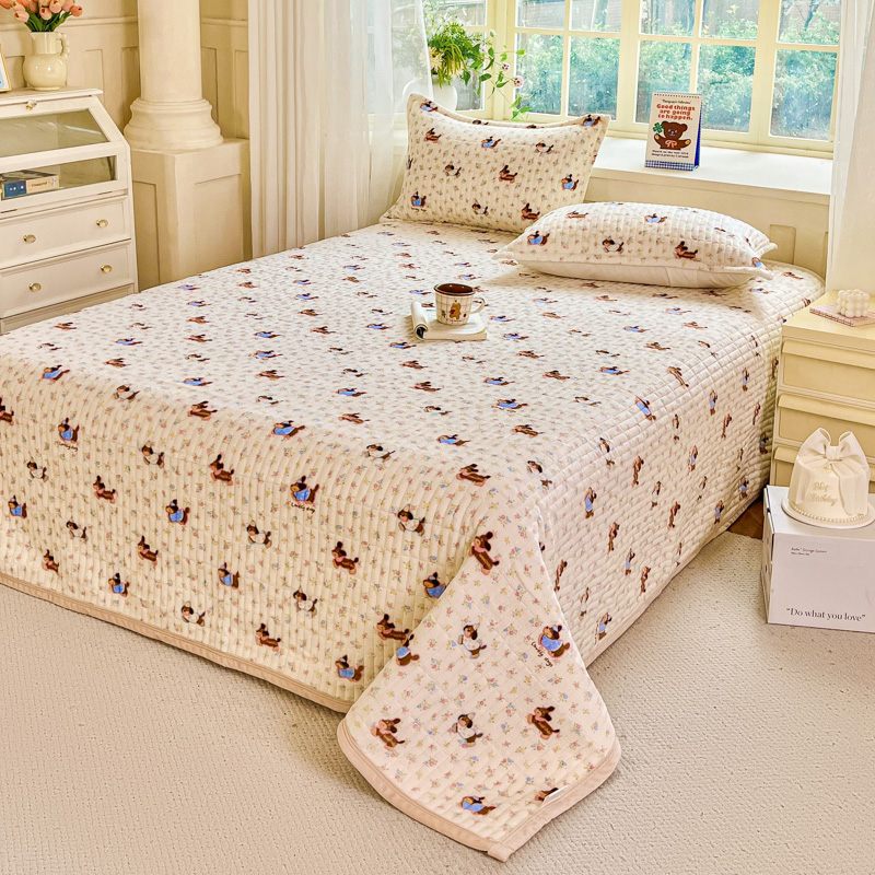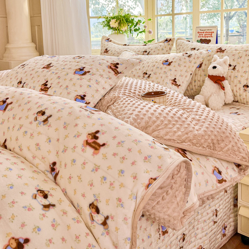 (总)尚美 2025新款毛巾绣牛奶绒床盖加棉加厚四件套,爆莓兔,背带熊猫,蛋糕猫,黑皮猫,恐龙,女孩,小粉象