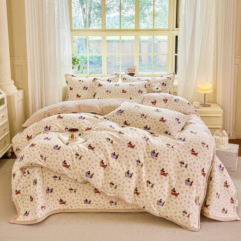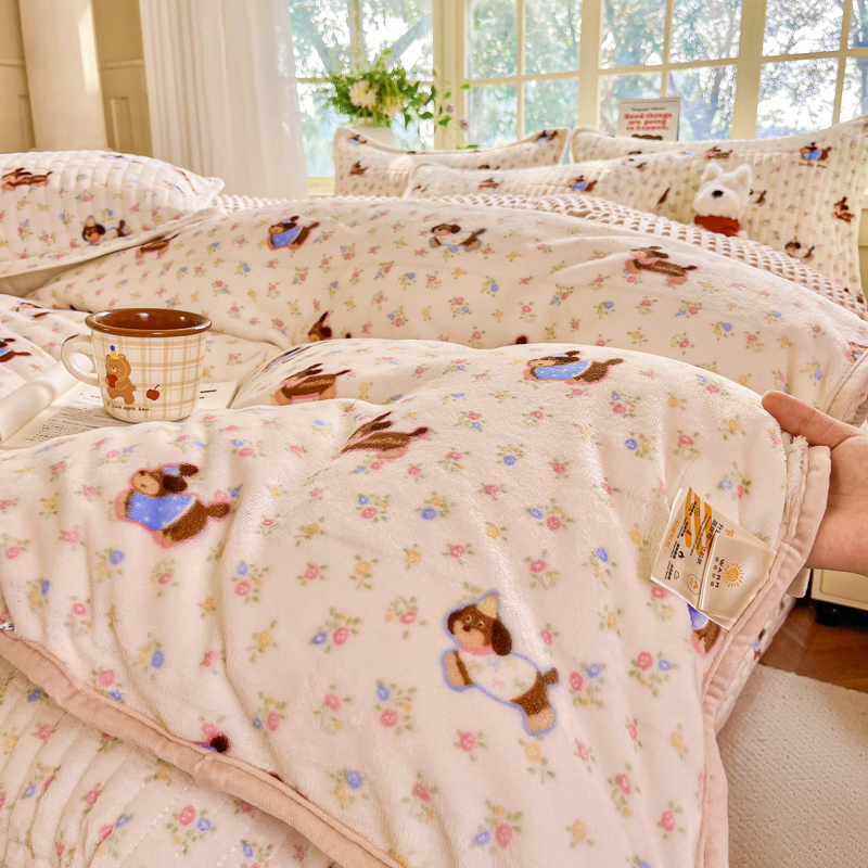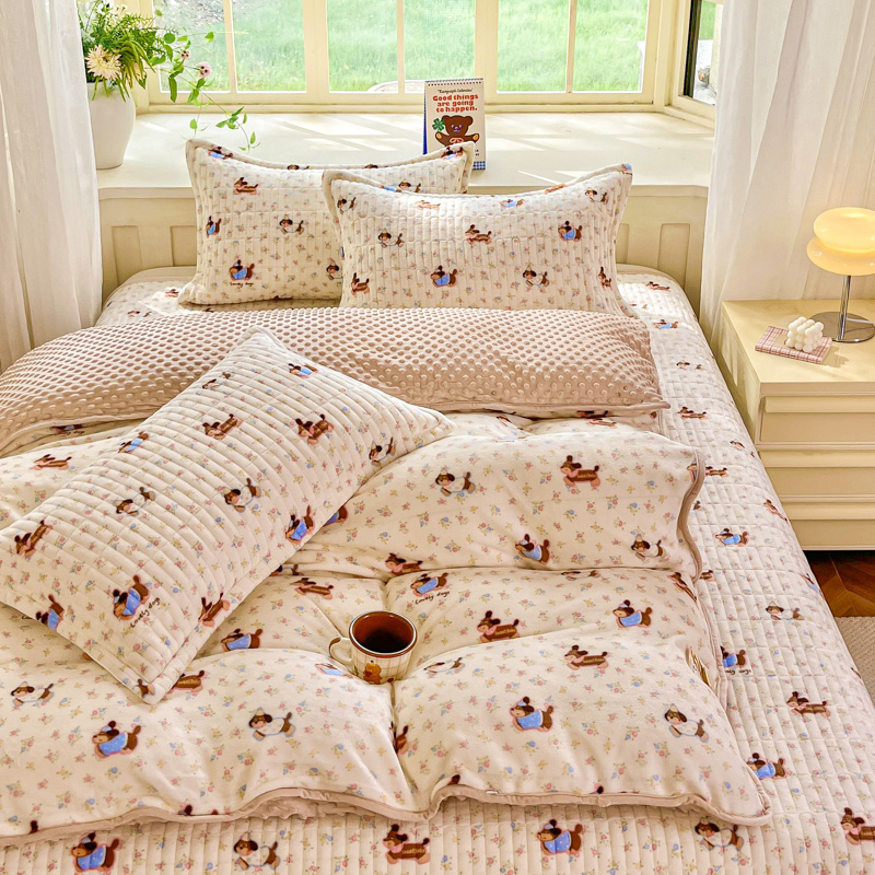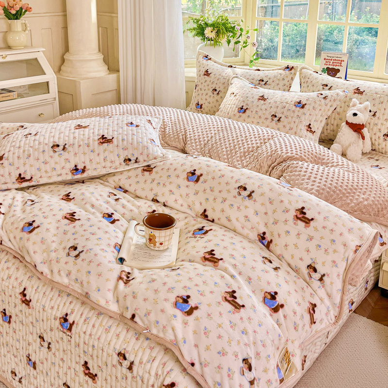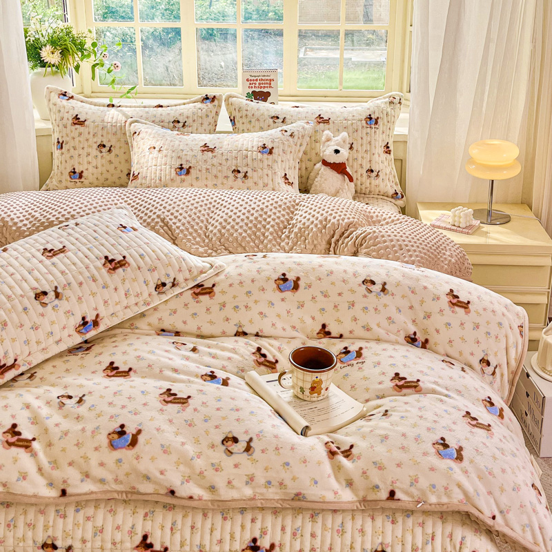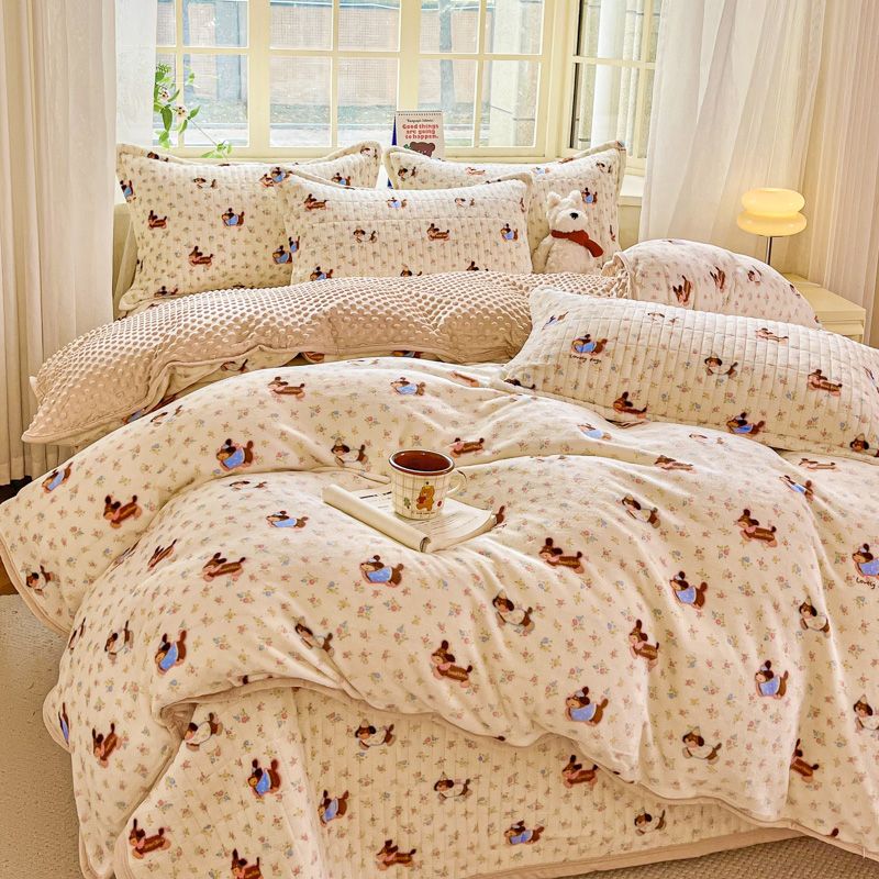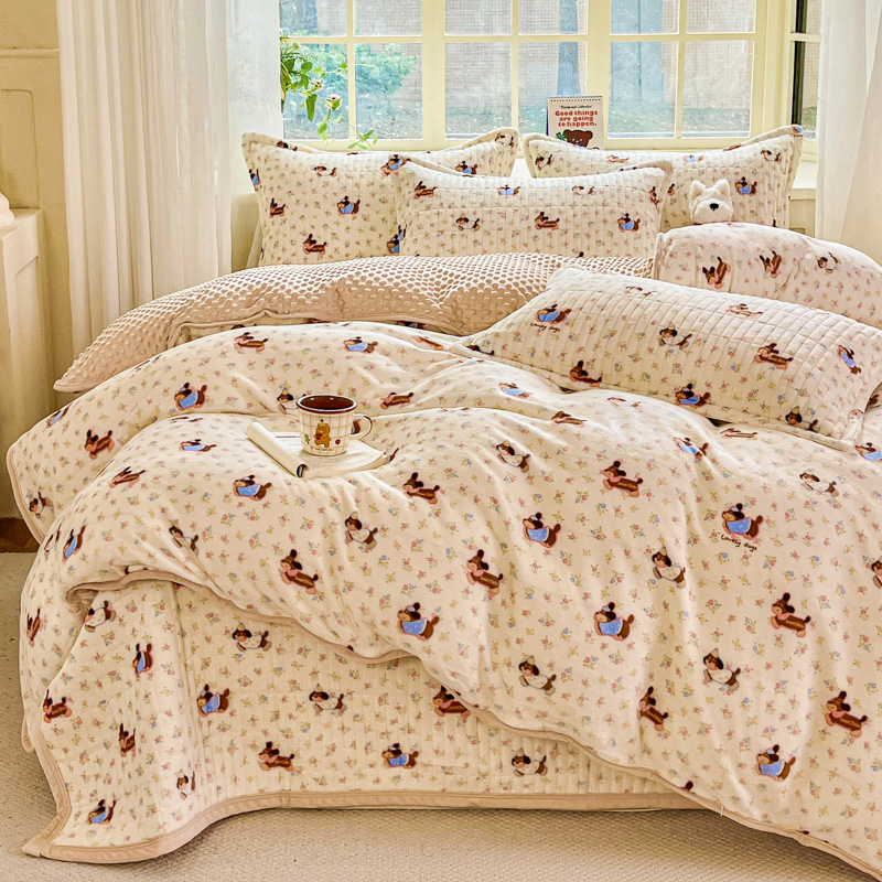 尚美家纺 2025冬季新品豆豆绒高克重床盖被套四件套 香肠狗