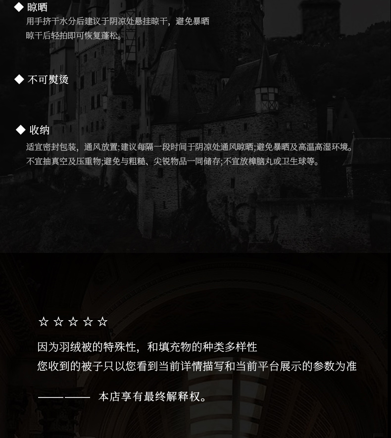 • 被子种类: 羽绒被