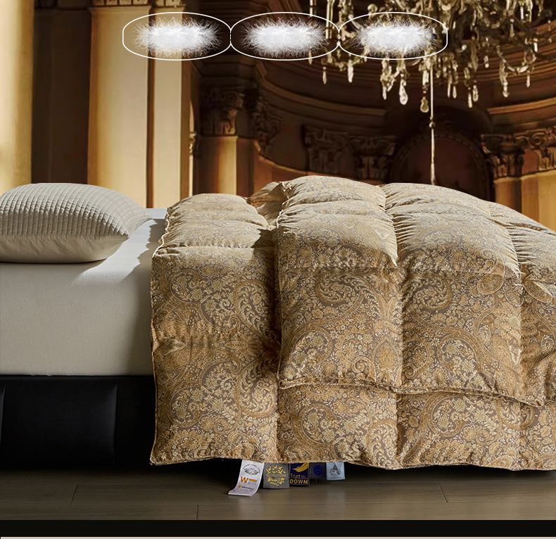 • 91家纺网 家纺一手货源 找家纺 (总)暖羽屋羽绒馆 2025新款国标95白鹅绒被子 绒子含量95羽绒被芯 双人2米加大冬被 婚庆羽绒被秋冬被,恒运莱 金-角度一,恒运莱 金-角度二