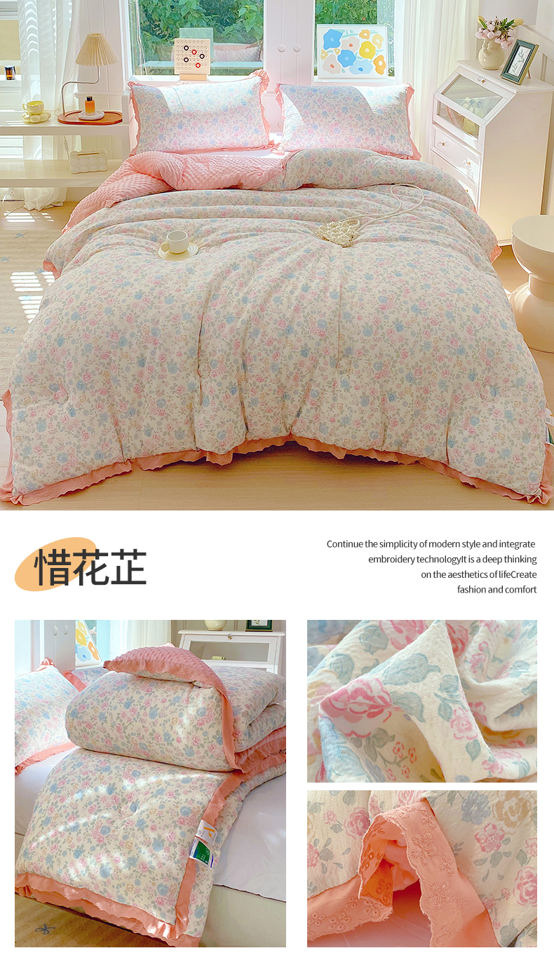 • 91家纺网 家纺一手货源 找家纺 梵克保罗 2025新款冬被系列 花边款豆豆被 郁香栀语