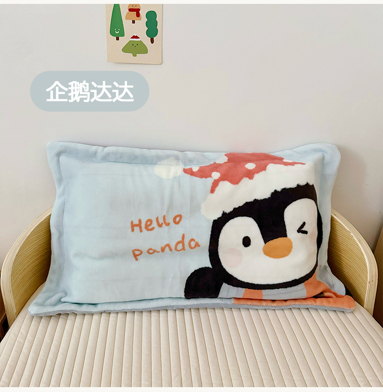 商品名称:荷马之梦 2025新款A类牛奶绒数码印花原创卡通大版儿童幼儿园单枕套枕套单件-萌宠 熊猫多多