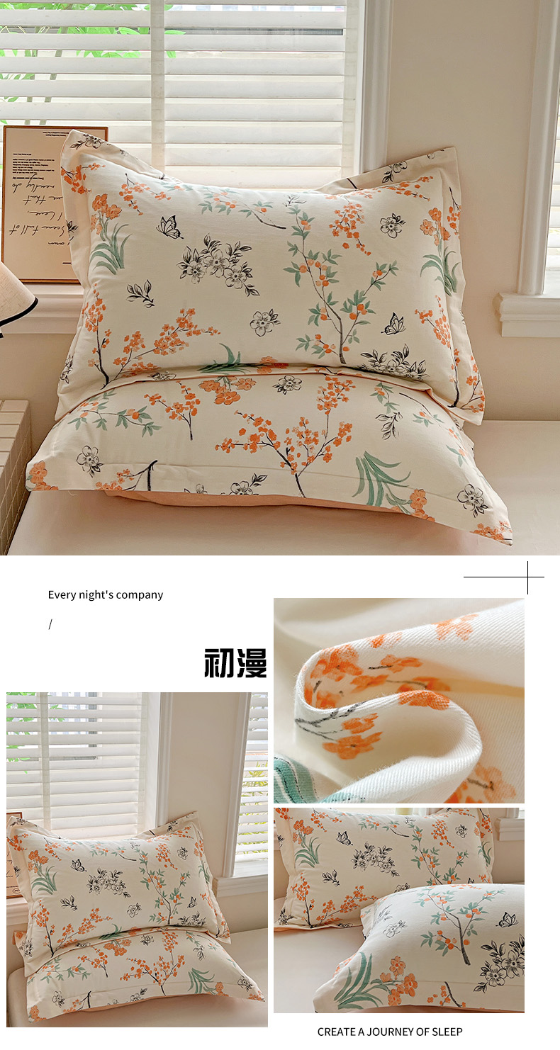 商品名称:依庭 2025新款高克重全棉纯棉磨毛印花单枕套 柚见