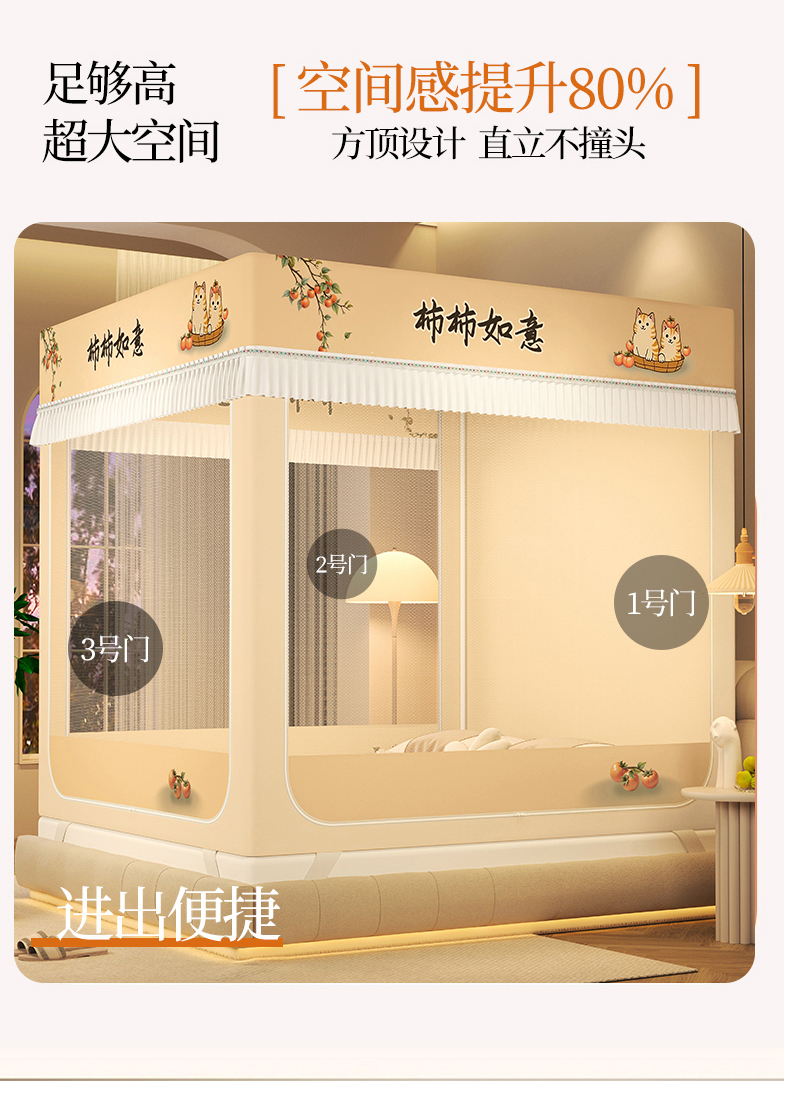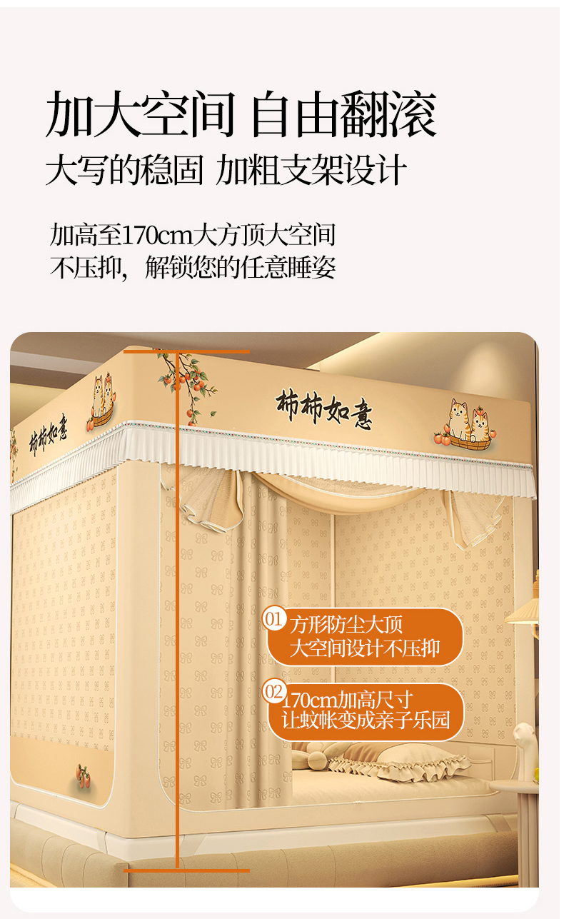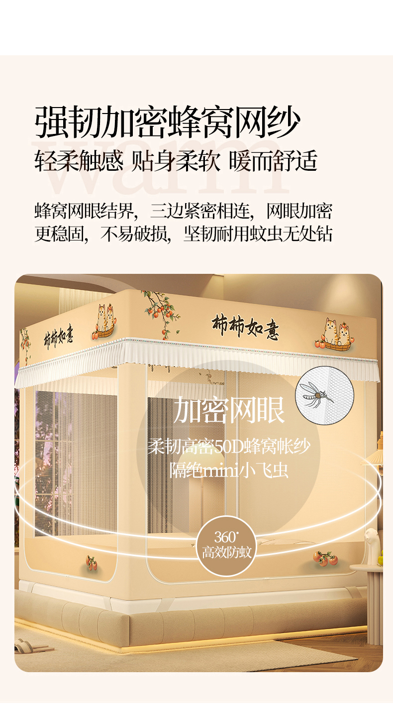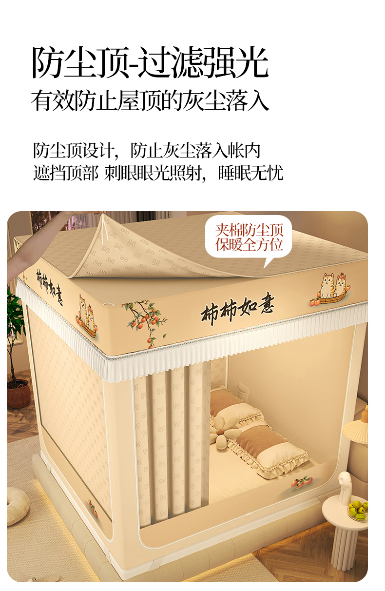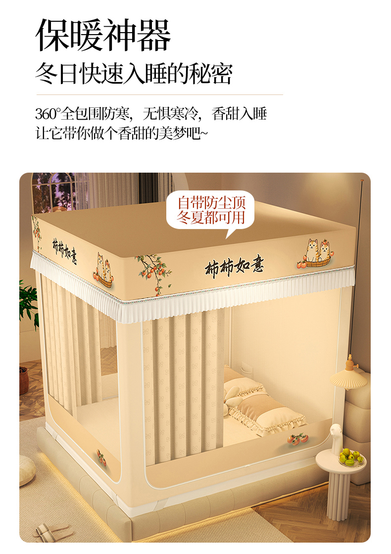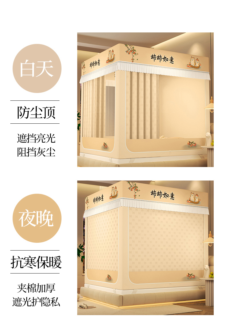 当前位置: 91家纺网 > 商品网购 > 床上用品 > 蚊帐 > 坐床式蚊帐 > 艾晶美家纺有限公司 2025新款坐床加棉卡通保暖蚊帐 柿柿如意