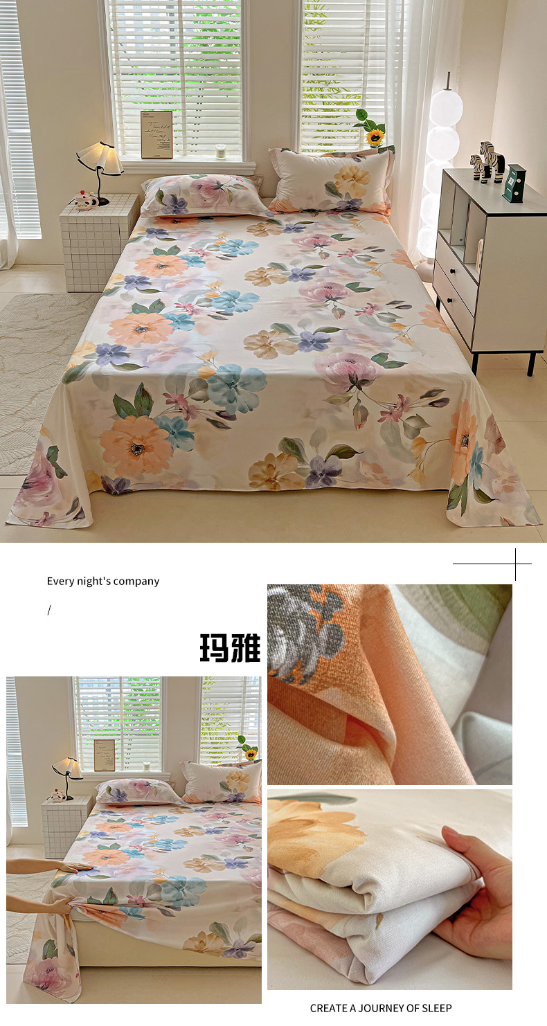 商品名称:依庭 2025新款高克重全棉纯棉磨毛印花单床单 山樱