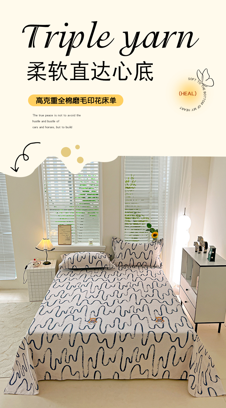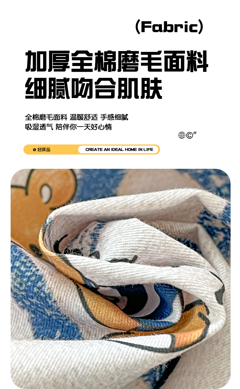 商品名称:依庭 2025新款高克重全棉纯棉磨毛印花单床单 幸运熊