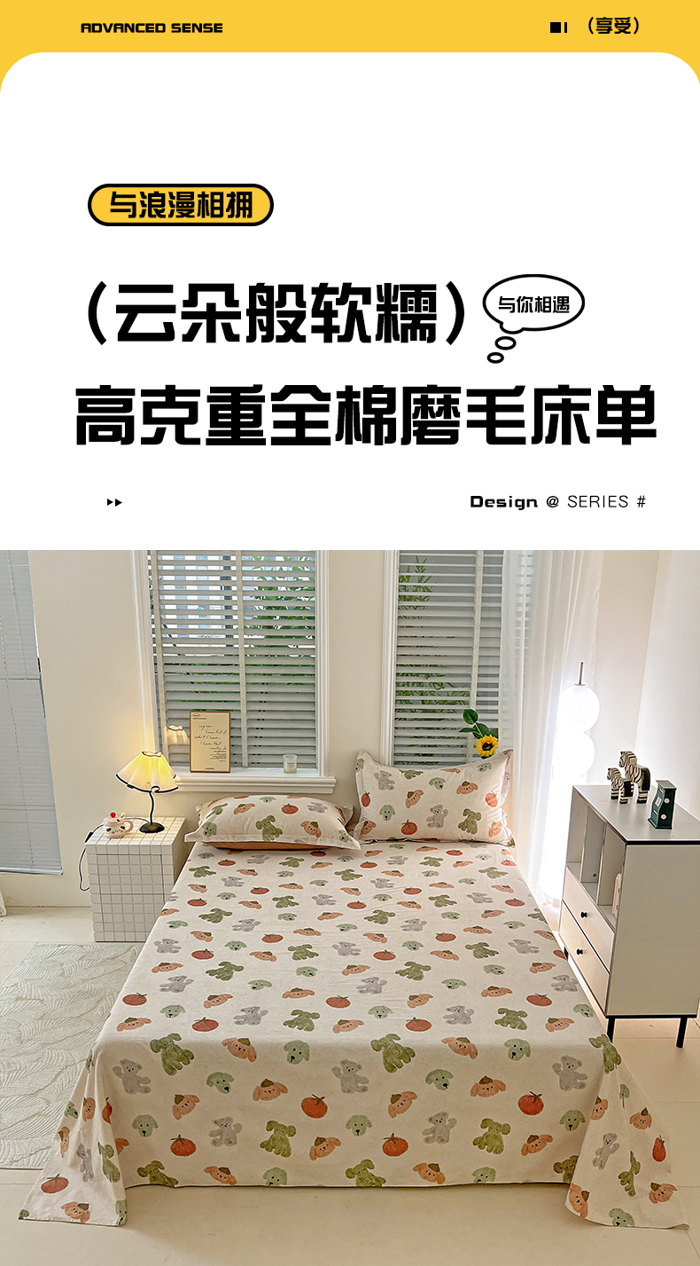 依庭 2025新款高克重全棉纯棉磨毛印花单床单 柚见