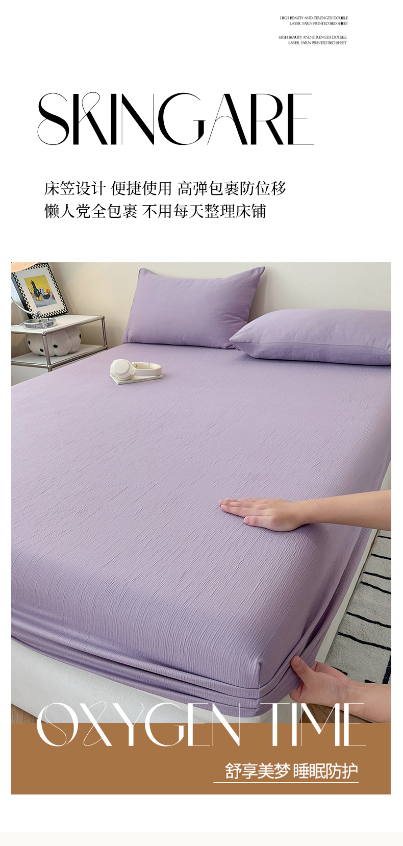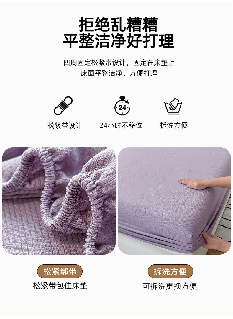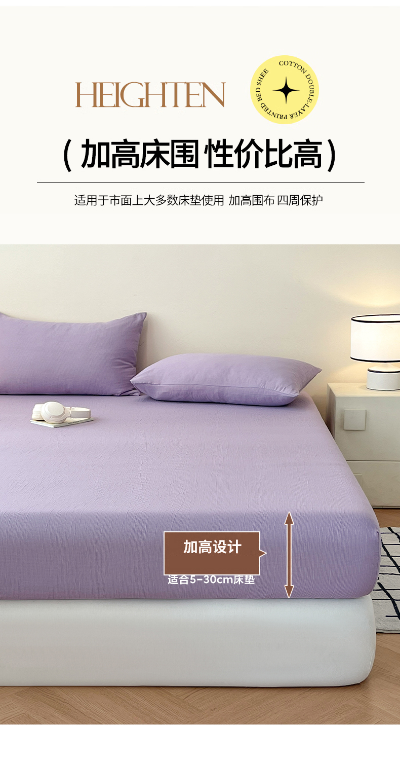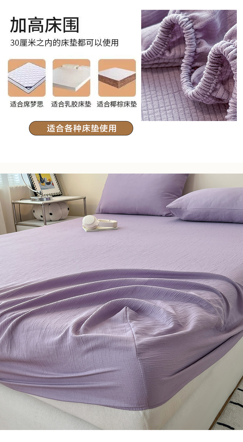 • 91家纺网 家纺一手货源 找家纺 瑞钰 2025新款透气云感三层纱床笠 柔幻紫