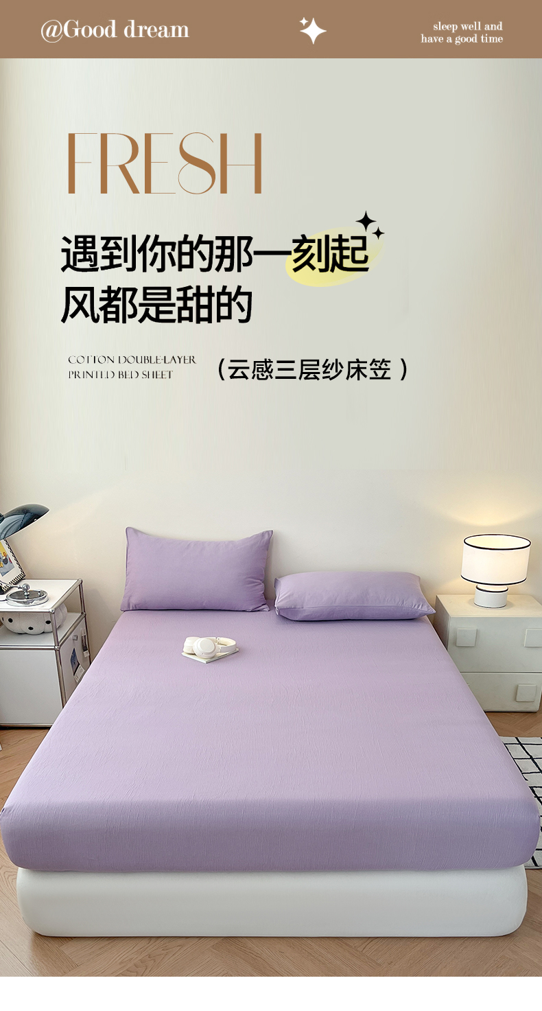 (总)瑞钰 2025新款透气云感三层纱床笠,军蓝,木槿紫,奶昔白,奶油黄,浅咖,柔幻紫,韶粉,深咖,水绿,天空蓝,烟灰