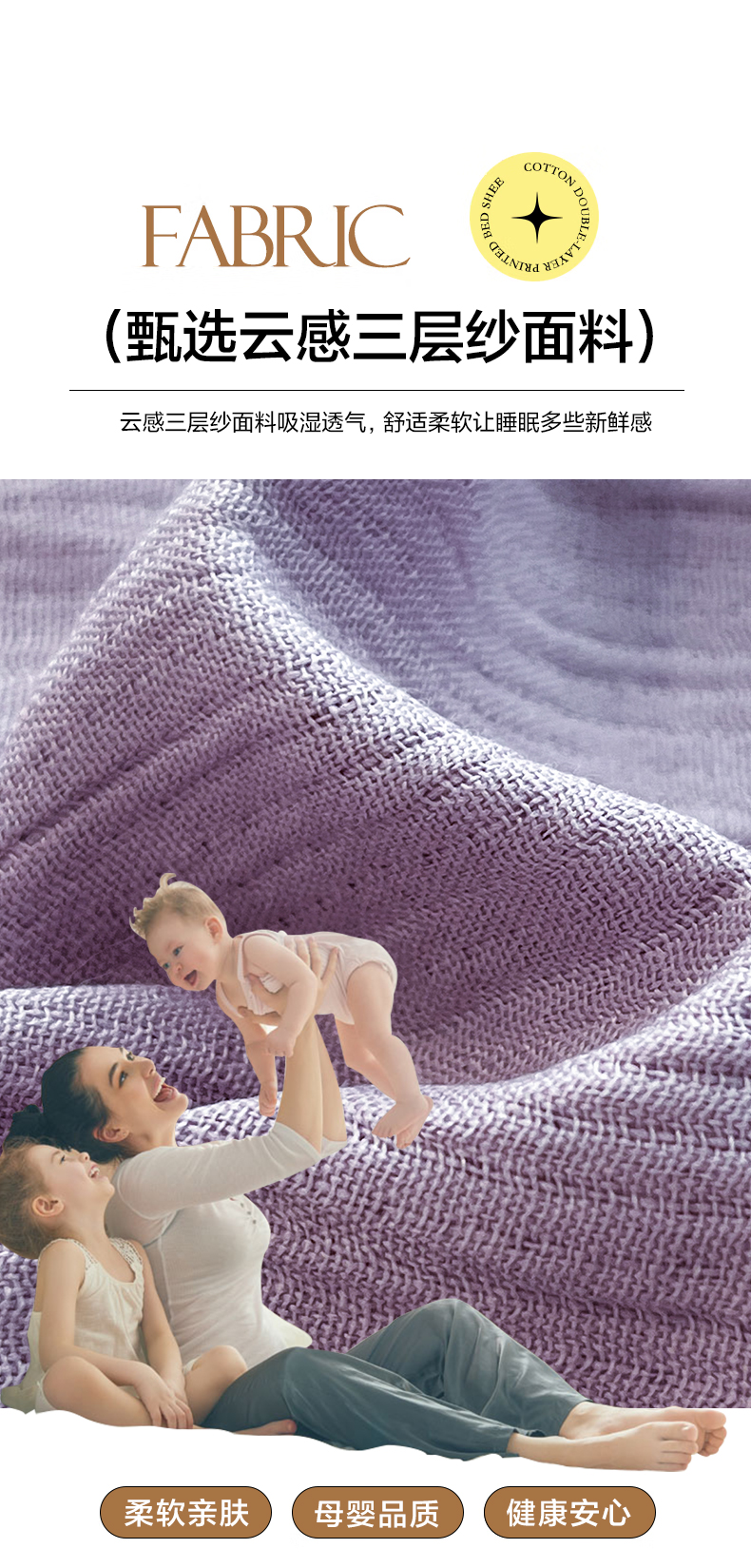 瑞钰 2025新款透气云感三层纱床笠 柔幻紫