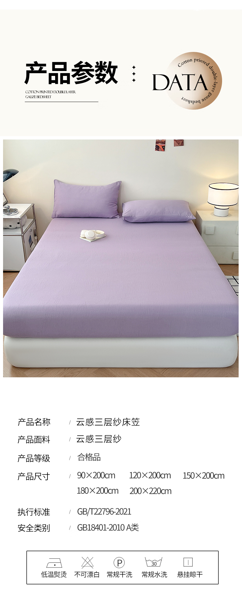 • 91家纺网 家纺一手货源 找家纺 (总)瑞钰 2025新款透气云感三层纱床笠,军蓝,木槿紫,奶昔白,奶油黄,浅咖,柔幻紫,韶粉,深咖,水绿,天空蓝,烟灰
