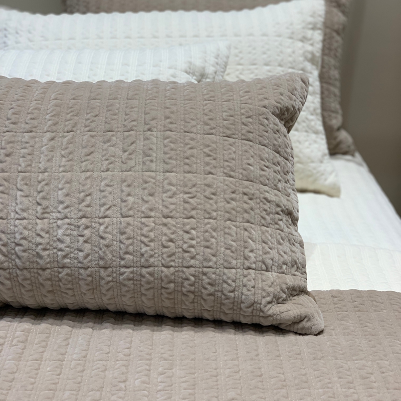 商品名称:汇庭 2025新款时尚条绒床盖三件套系列 时尚条咖