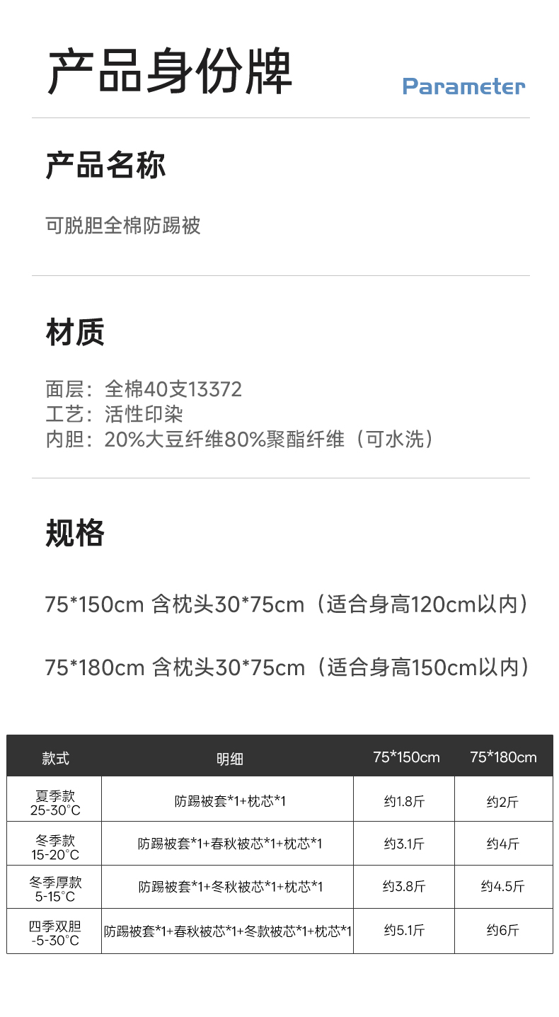 75*150cm春秋款(被套+大豆薄内胆) | ¥99.00 |