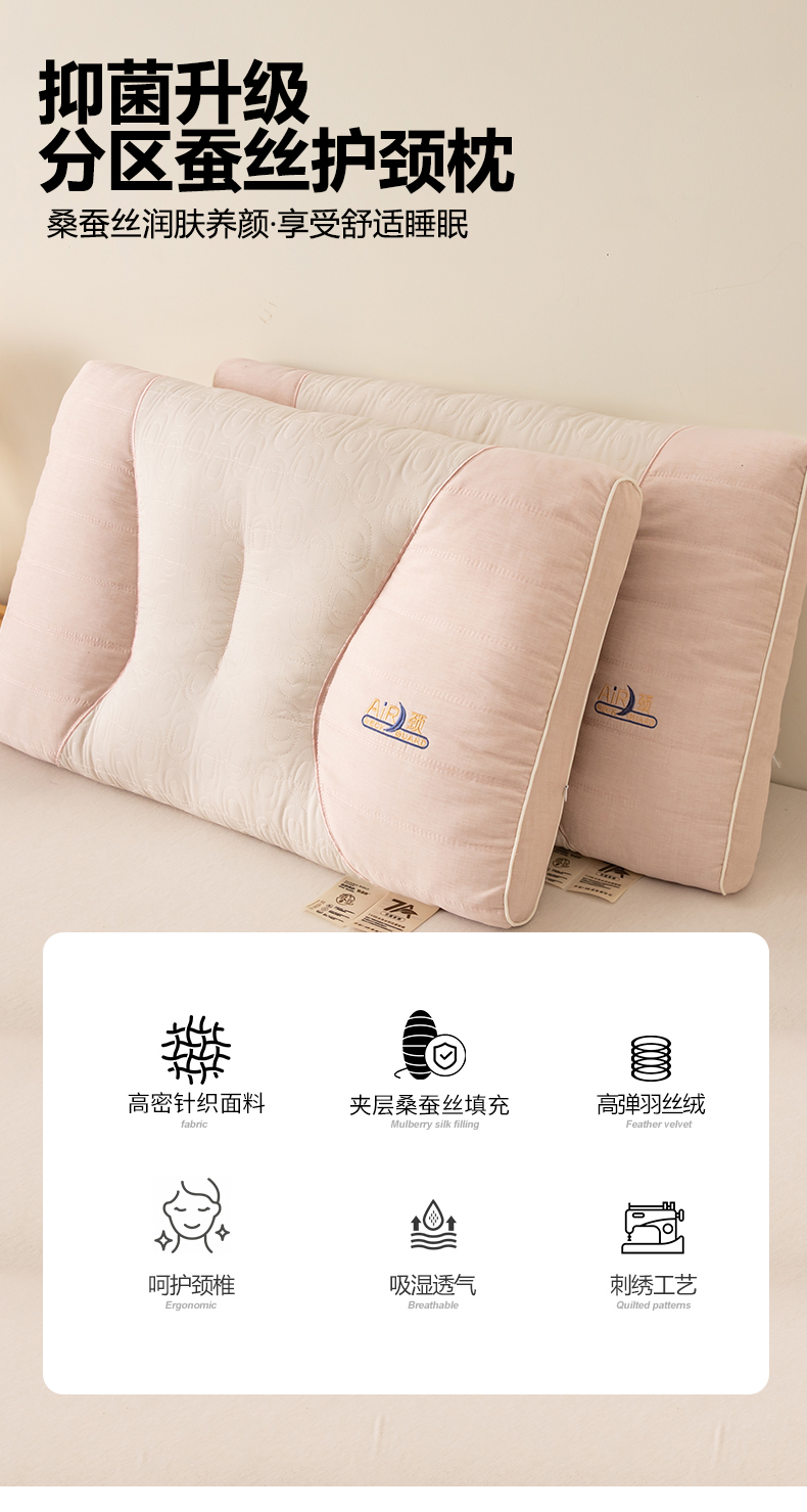 商品名称:贵夫人 2025新款分区蚕丝护颈枕-抑菌升级 枕头枕芯 灰低1对