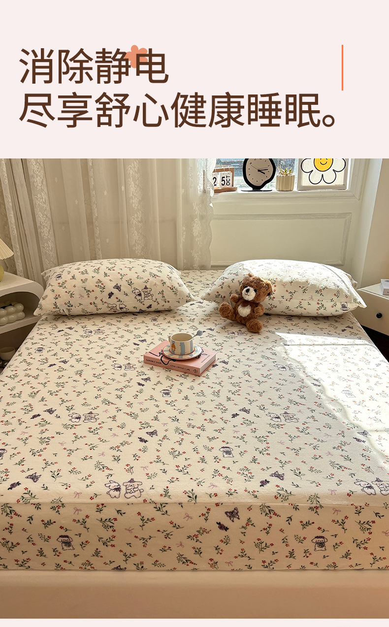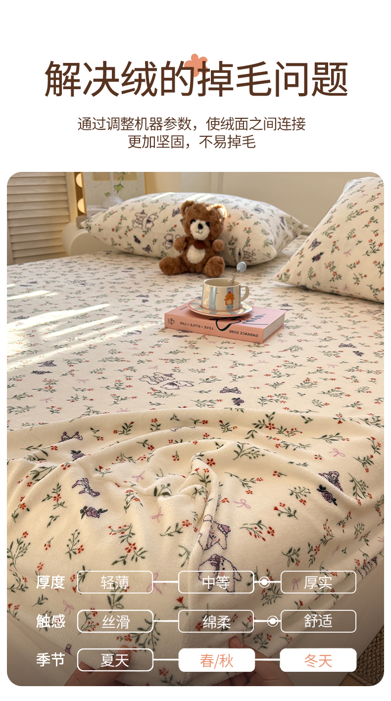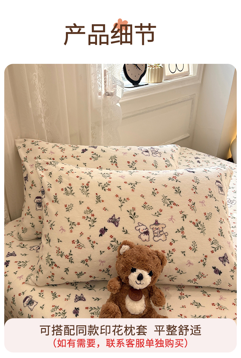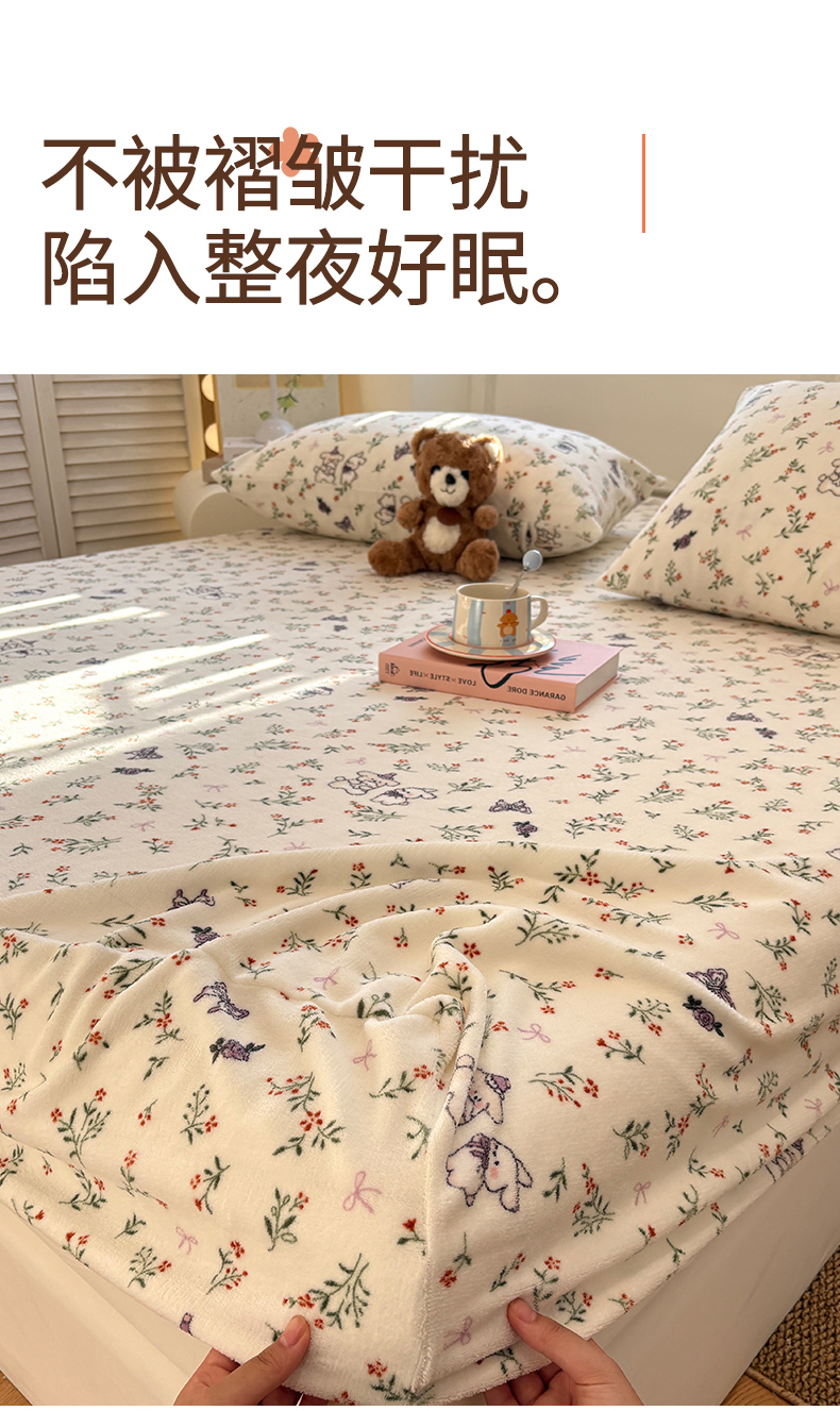 商品名称:居眠 2025新款单层印花牛奶绒床笠 单层绒-芋泥小兔