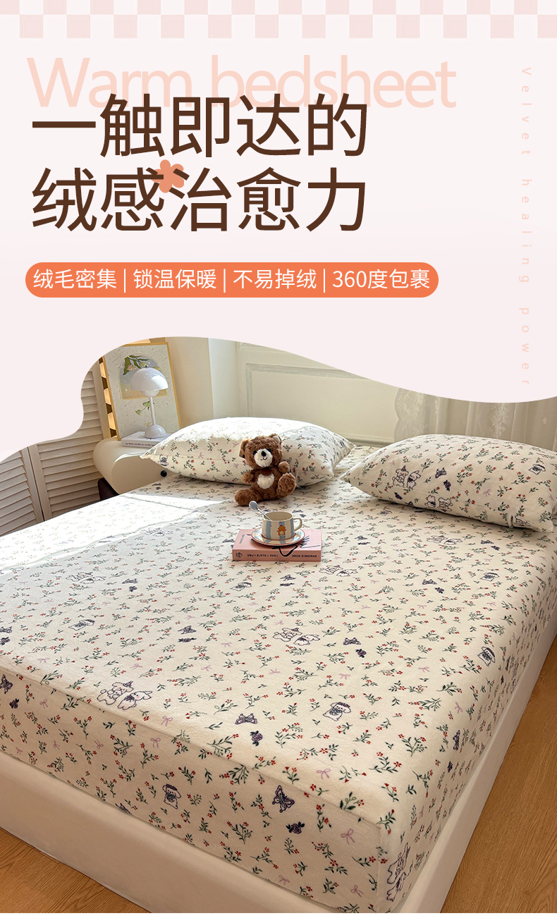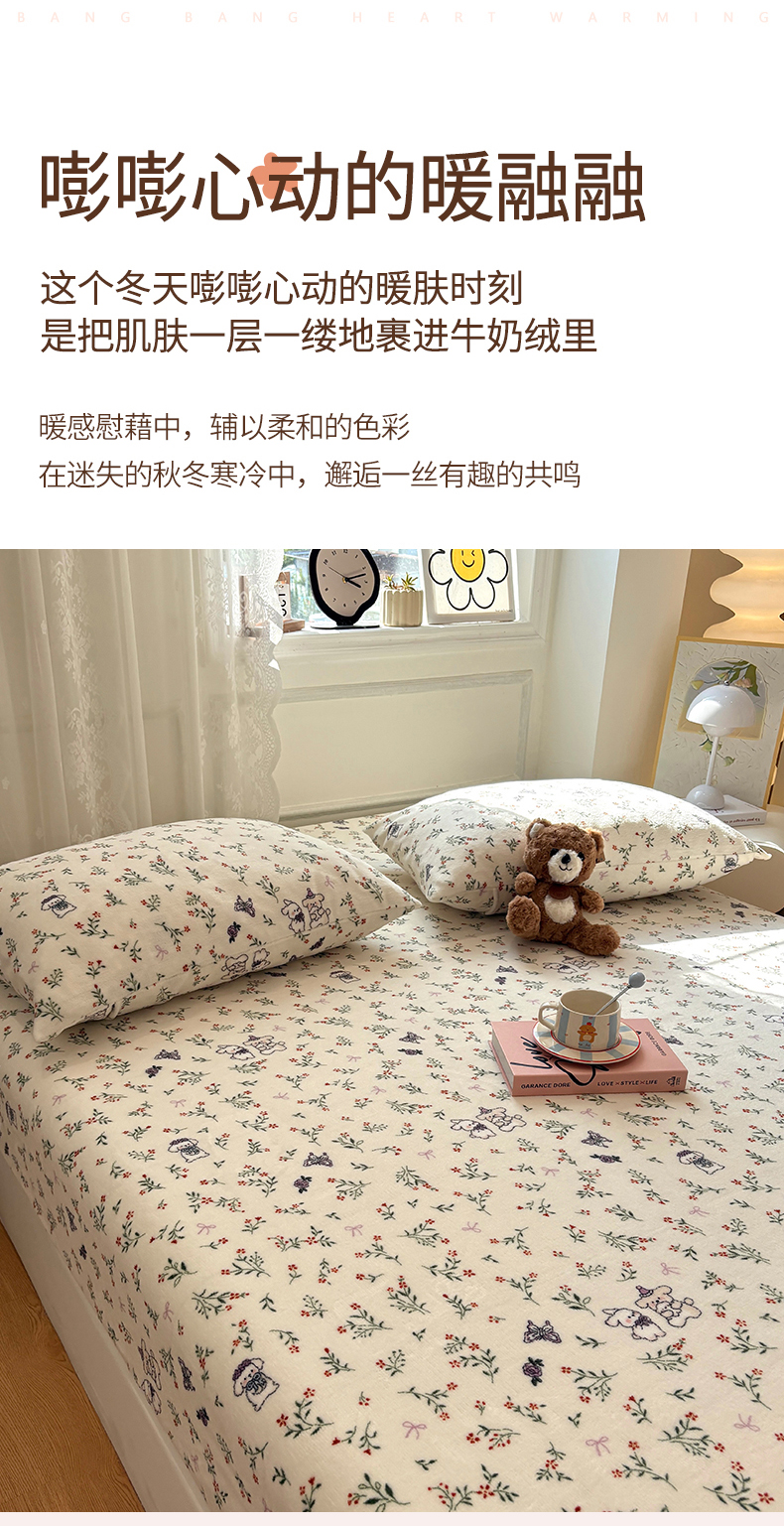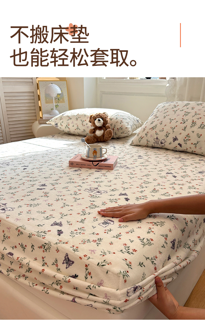 商品名称:居眠 2025新款单层印花牛奶绒床笠 单层绒-芋泥小兔