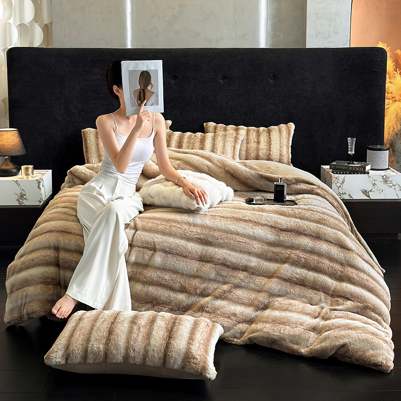 商品名称:若未家居 LOVEWE HOUSE 2025新款丹麦貂A版350克B版220克全消光牛奶绒简约高级感皮草绒四件套-龙猫(控价券后不低于298) 龙猫-驼色