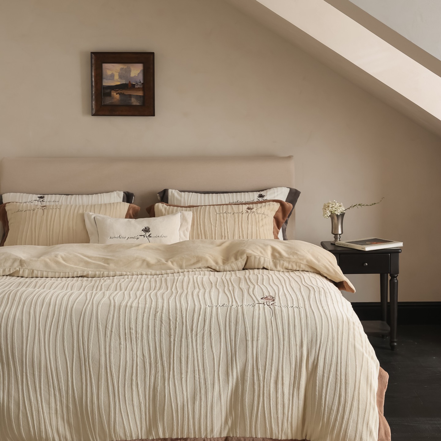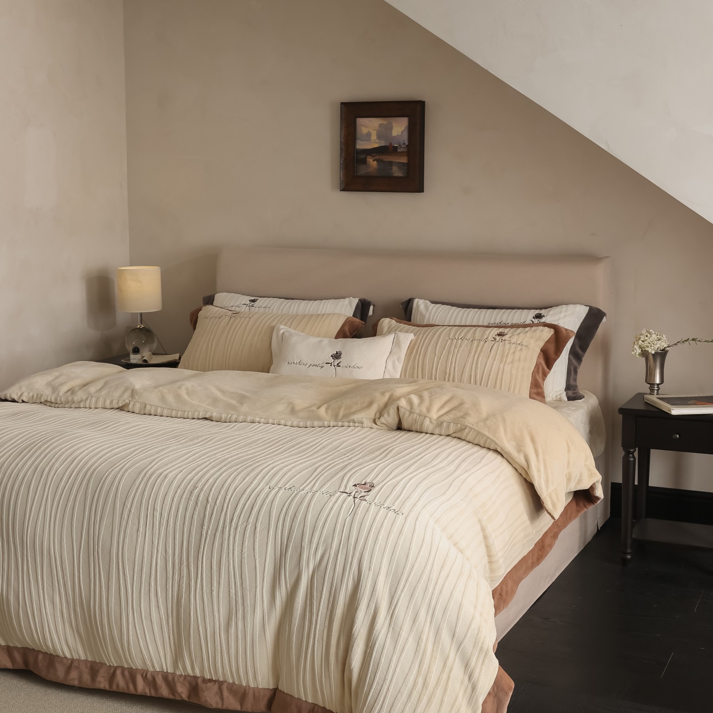 初拾 2025新款230g全消光牛奶绒雕花 ”小资感“四件套-伯爵茶 伯爵茶-奶油白