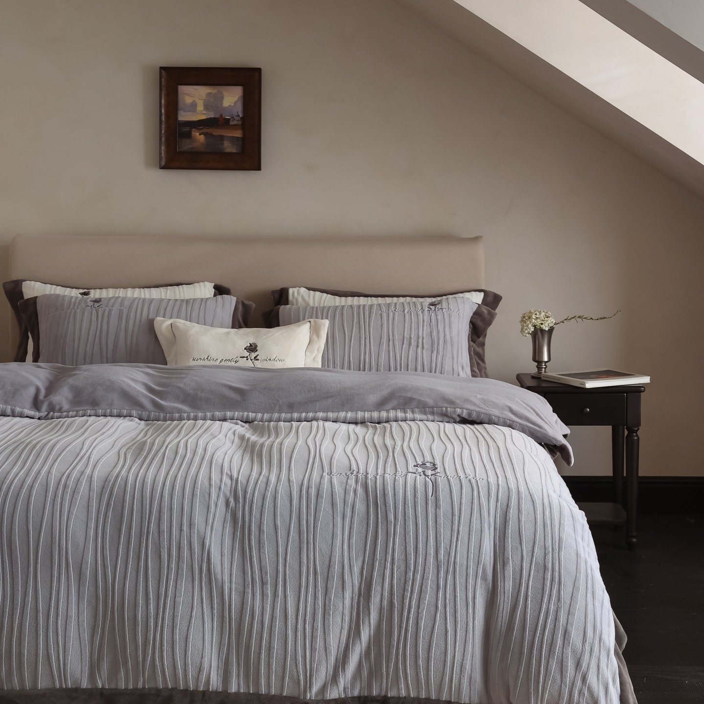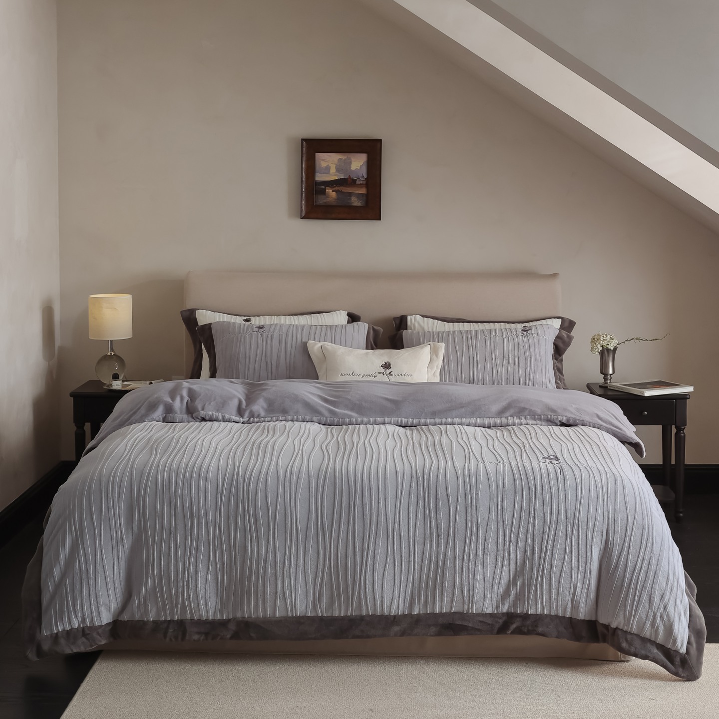 (总)初拾 2025新款230g全消光牛奶绒雕花 ”小资感“四件套-伯爵茶,伯爵茶-高级灰,伯爵茶-栗子棕,伯爵茶-奶油白