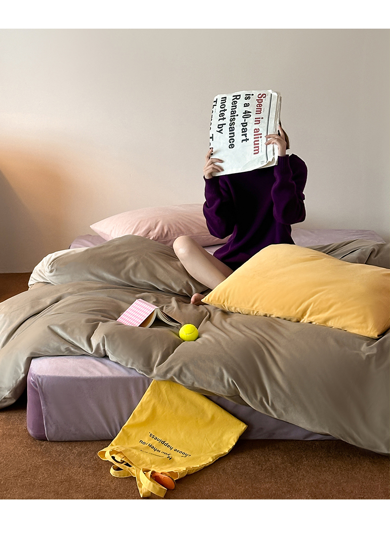 当前位置: 91家纺网 > 商品网购 > 床品套件 > 四件套 > 其它四件套 > 例外 2025新款日式良品190克高克重天鹅绒HD混搭系列四件套 HD藕紫