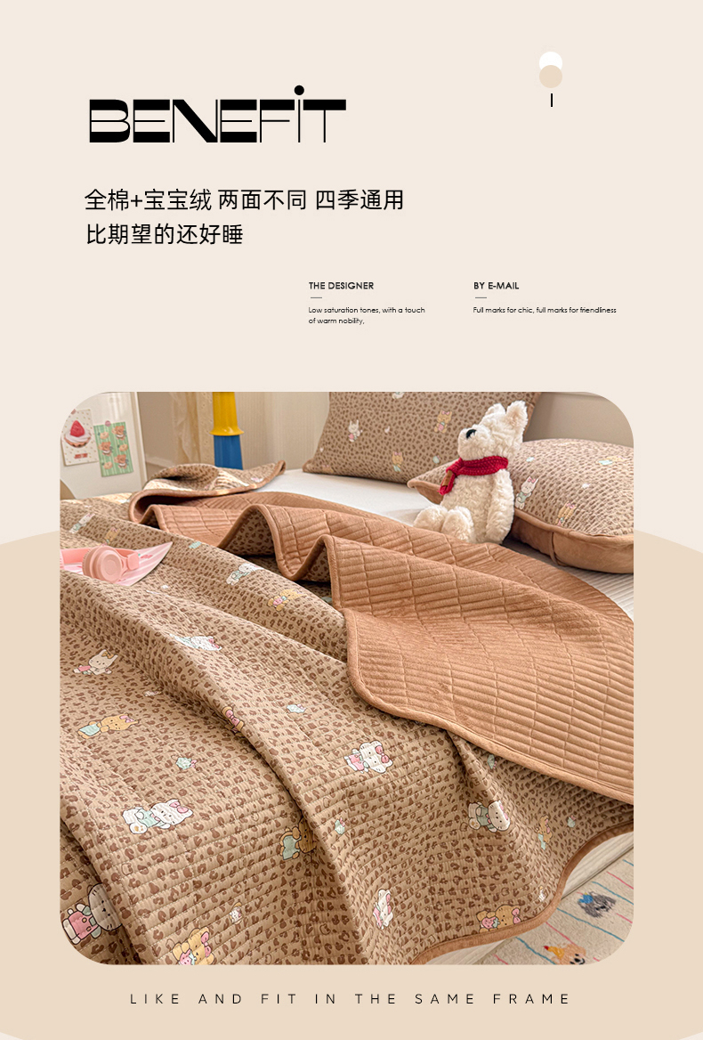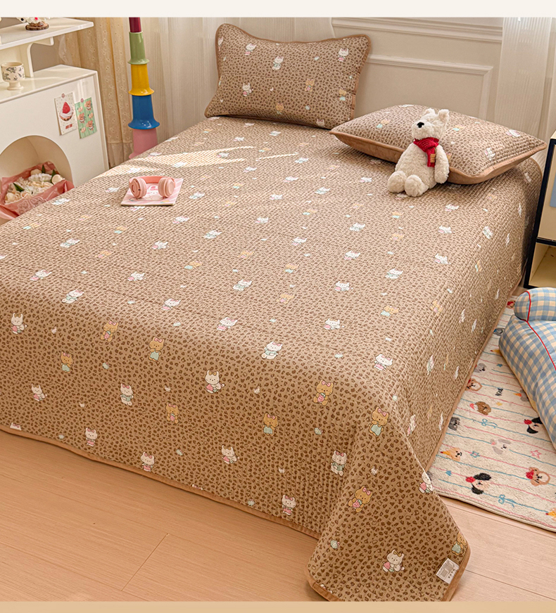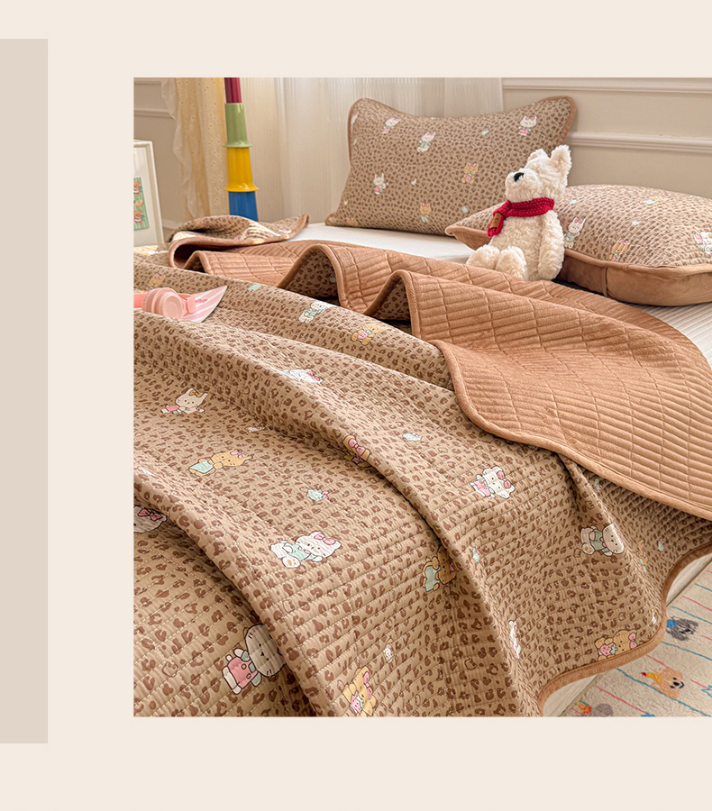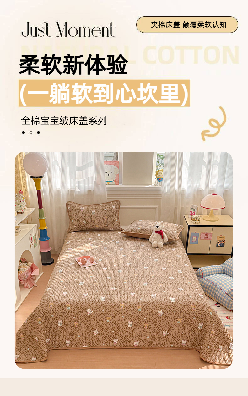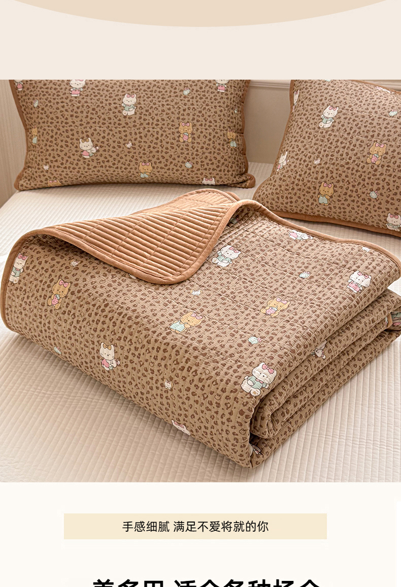 • 91家纺网 家纺一手货源 找家纺 简宜家居(朝初家纺) 2025新款A面100%全棉B面宝宝绒棉绒包边床盖正反两用 豹纹-咖