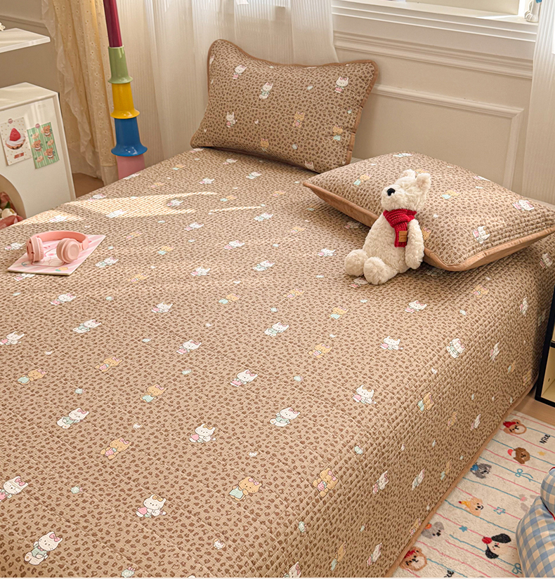 (总)简宜家居(朝初家纺) 2026新款全棉绗缝花边床盖四件套,幸福小兔,暖菊花兔,牵藤兔,素条花-粉,素条花-蓝,兔与花笺
