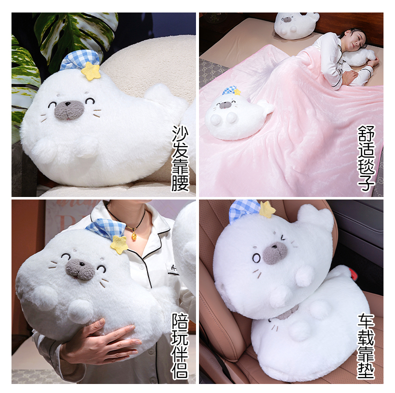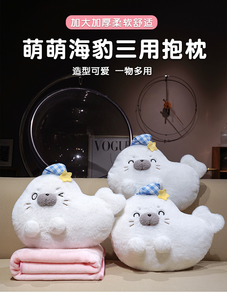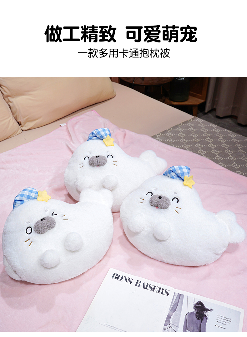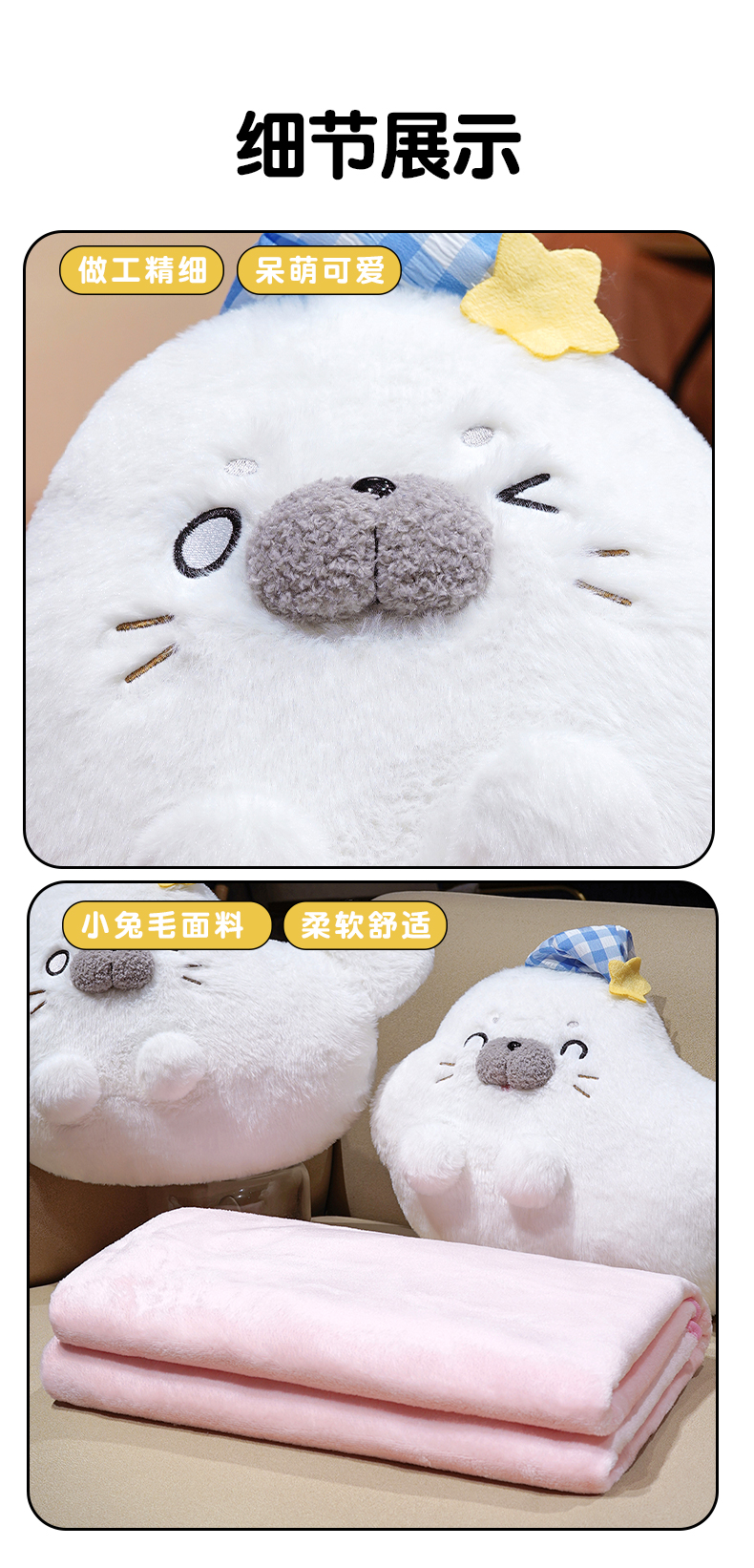 商品名称:仟亿莱 2025新款萌萌海豹三用抱枕毯 三用眨眼海豹
