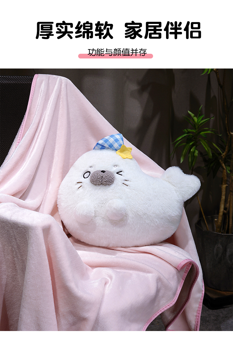 仟亿莱 2025新款萌萌海豹三用抱枕毯 三用眨眼海豹