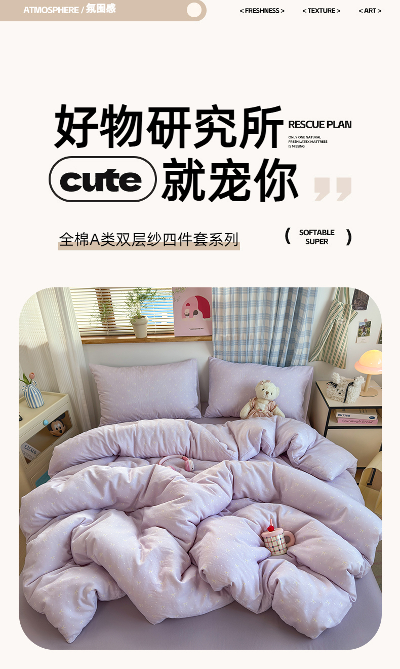 当前位置: 91家纺网 > 商品网购 > 床品套件 > 四件套 > 全棉普通四件套 > 曼之夏 2025新款全棉纯棉双层印花四件套 紫梦