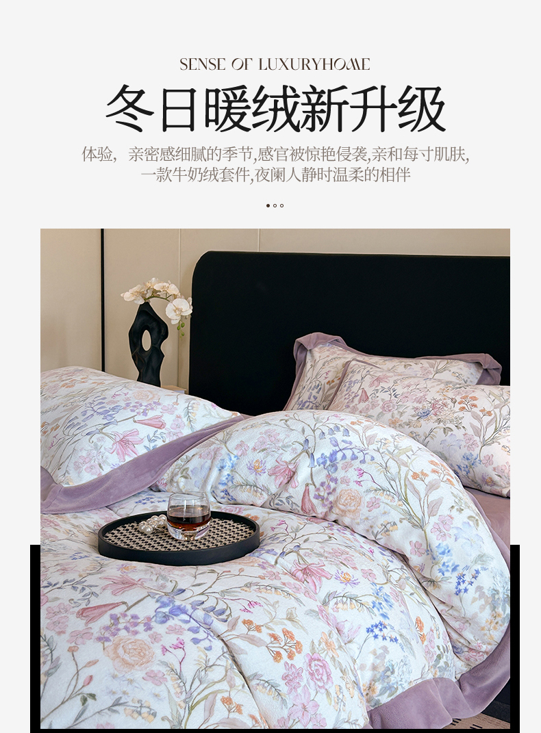 当前位置: 91家纺网 > 商品网购 > 床品套件 > 四件套 > 牛奶绒四件套 > 眷恋家纺 2025新款加厚牛奶绒法式数码印花宽边四件套 屿冬