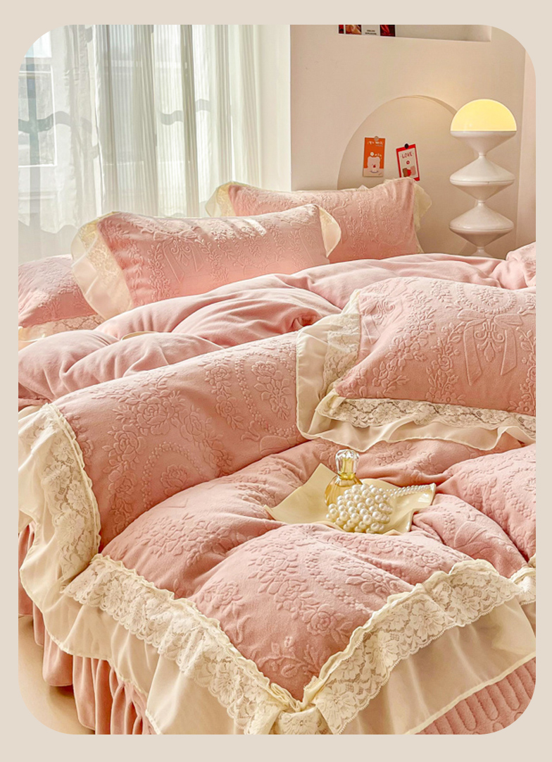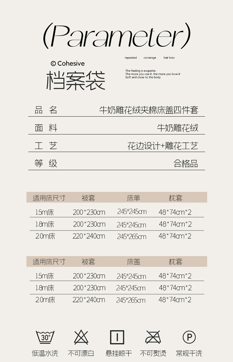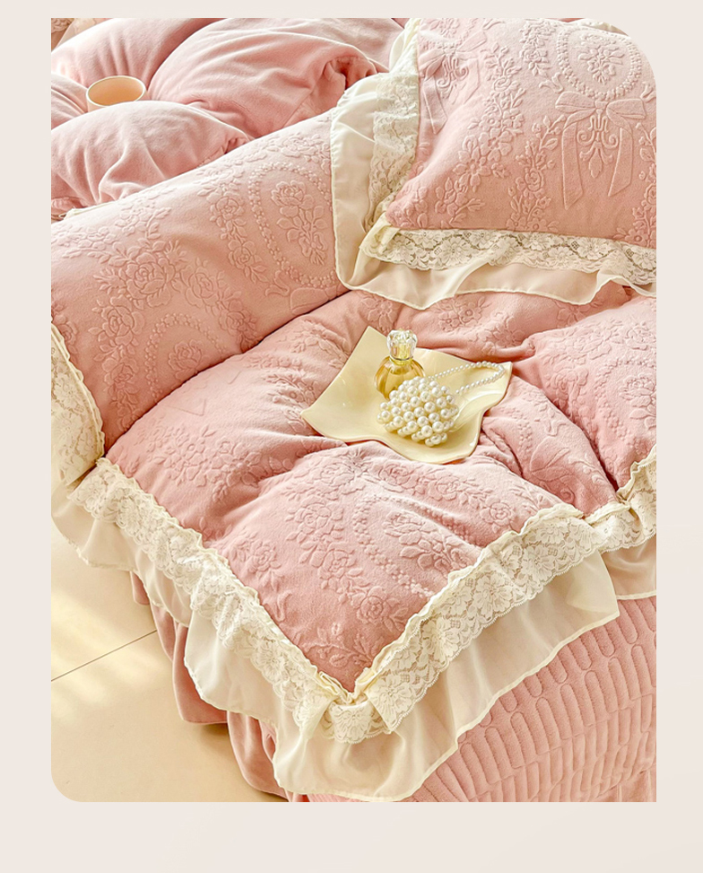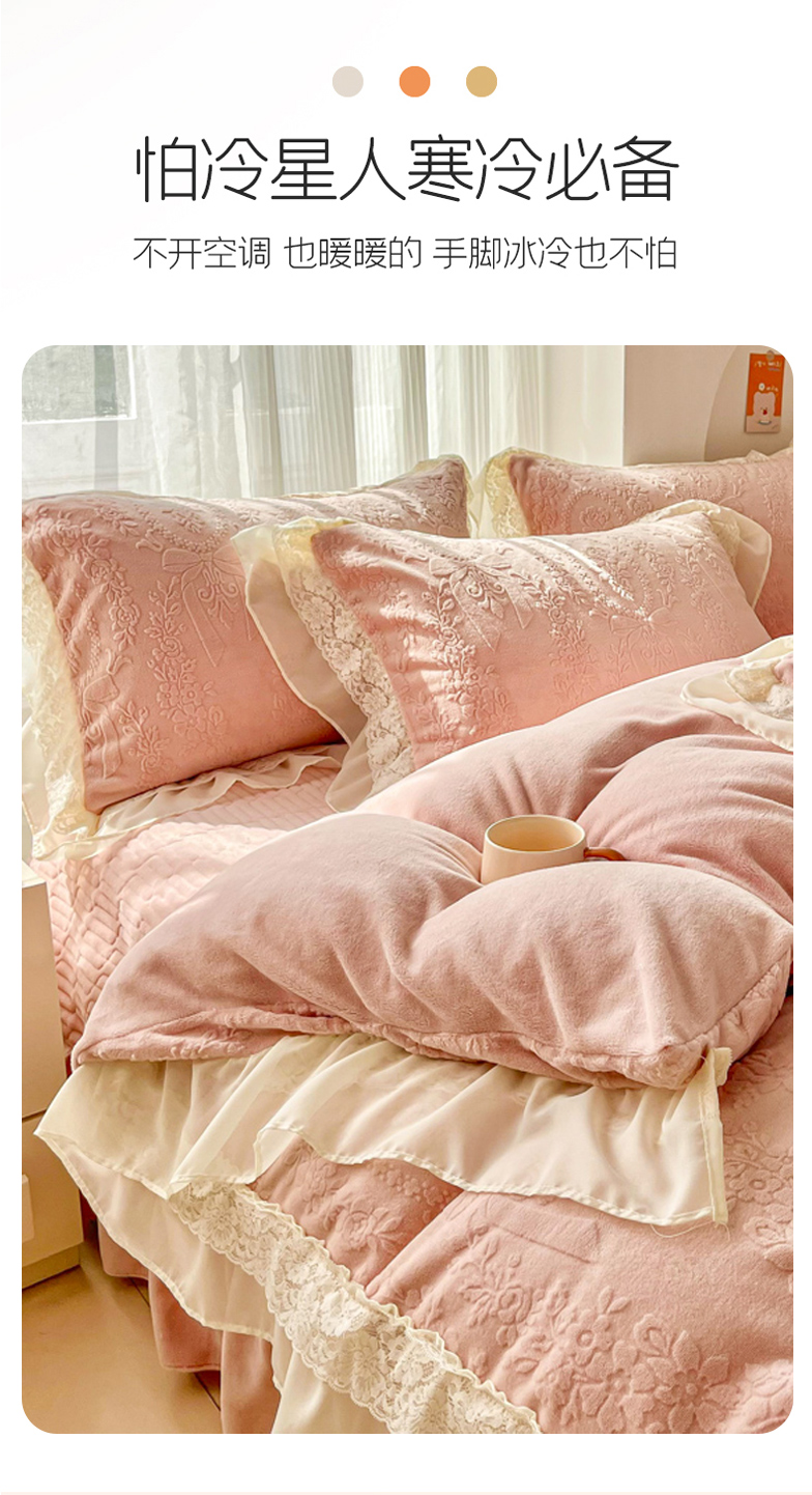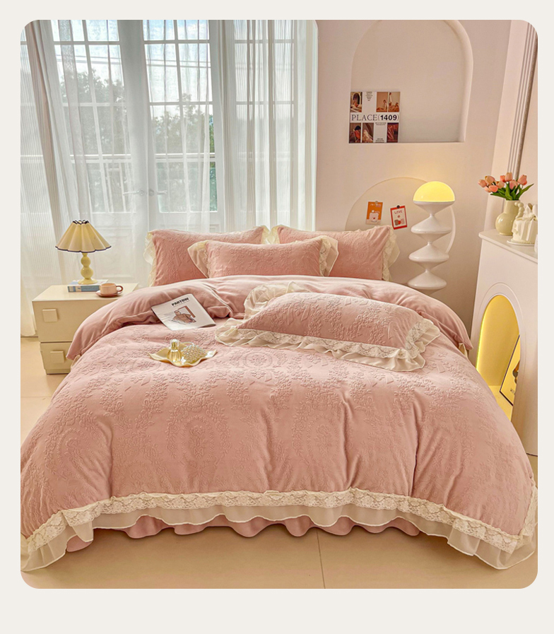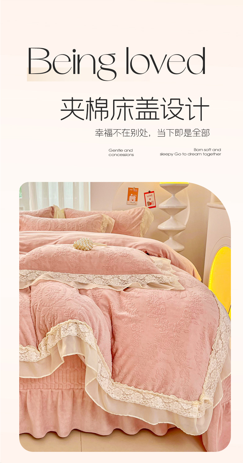 当前位置: 91家纺网 > 商品网购 > 床品套件 > 四件套 > 其它四件套 > 七七家纺 2025新款雕花牛奶绒夹棉床盖四件套-若梦系列 若梦-粉玉